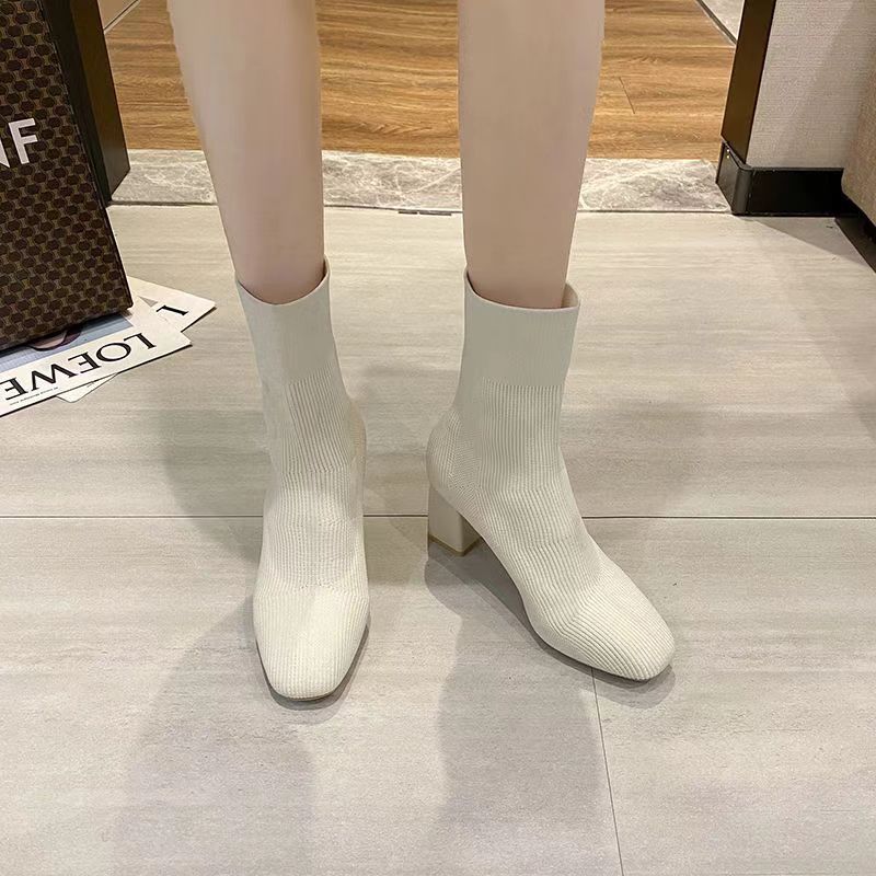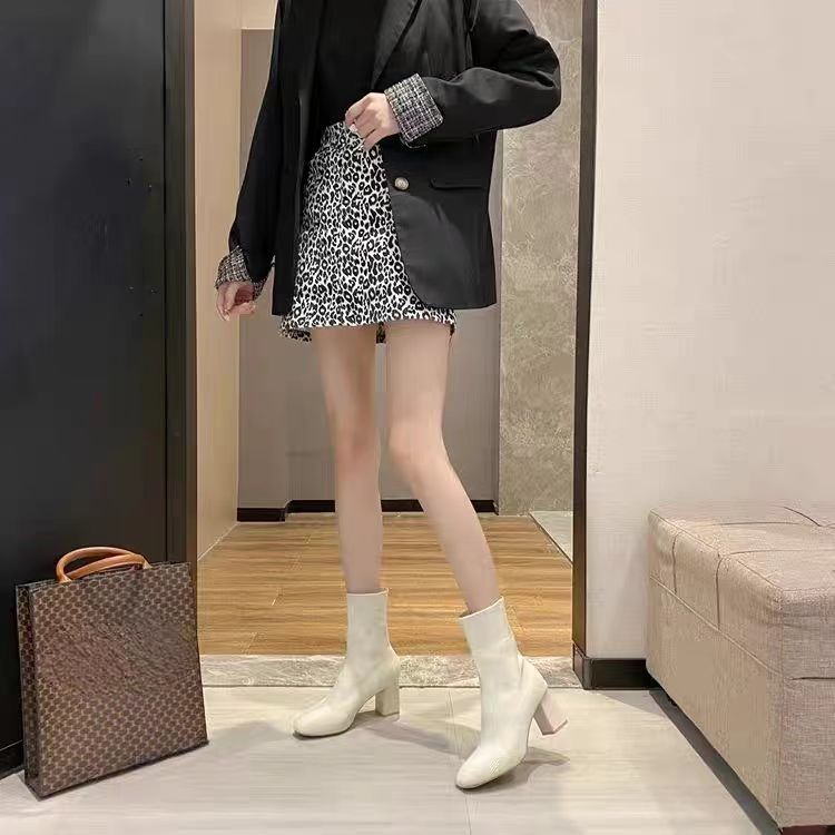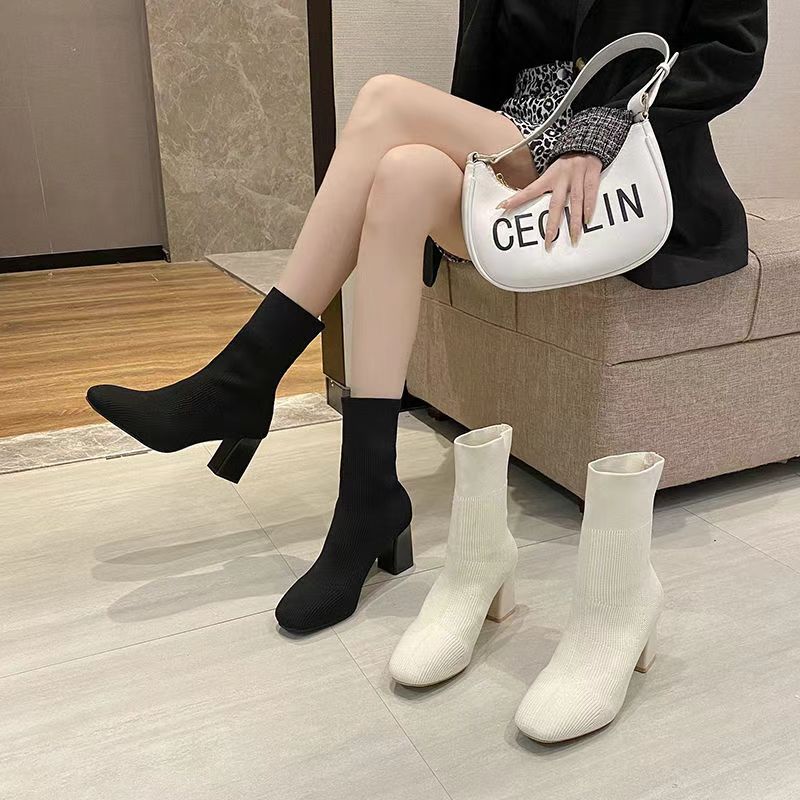 국경 간 대형 2024 가을 새로운 대외 무역 대형 뾰족한 부츠 여성 두꺼운 굽 하이힐 유럽과 미국의 패션 중간 튜브 여성 부츠스토어 가기