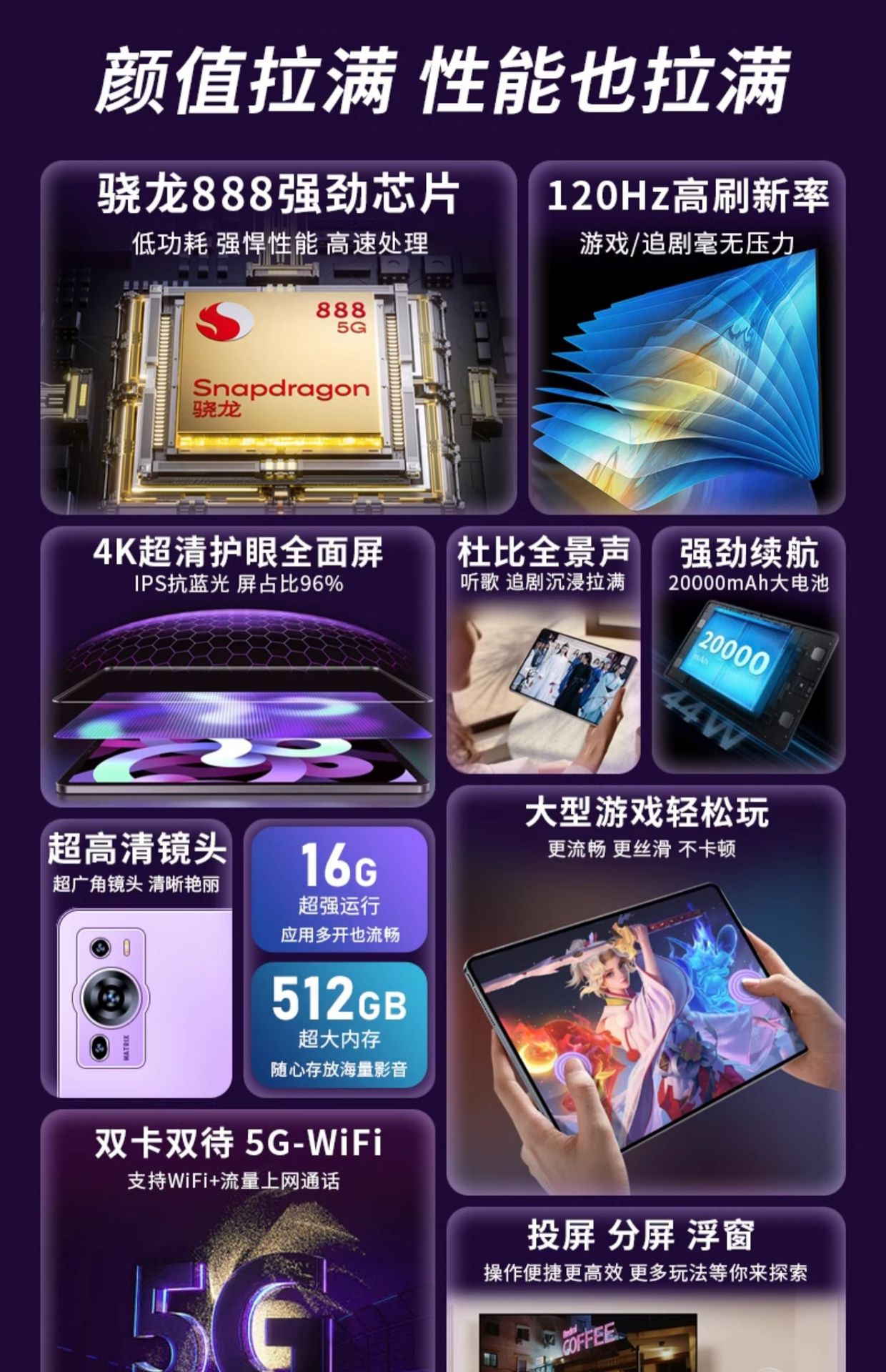 2025 새로운 8GEN2 전체 화면 높은 실행 울트라 클리어 태블릿 5g 전체 netcom 태블릿 12 인치스토어 가기