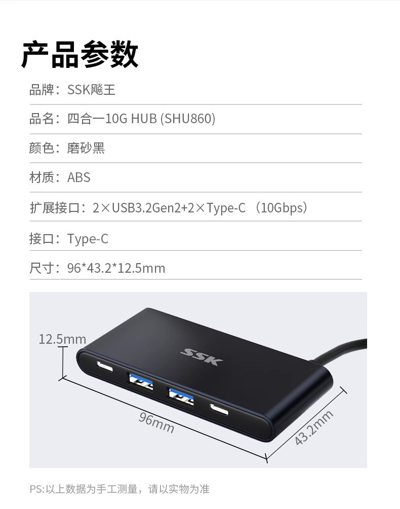 SSK Biao Wang USB3.2 10G HUB 고속 도킹 스테이션 타입 C 스플리터 10G 허브 SHU860스토어 가기