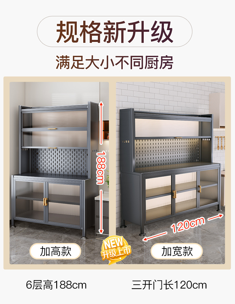 주방 폐쇄 된 보관 랙 긴 바닥 다층 단철 사이드 보드 다기능 저장 요리 및 냄비 저장 캐비닛