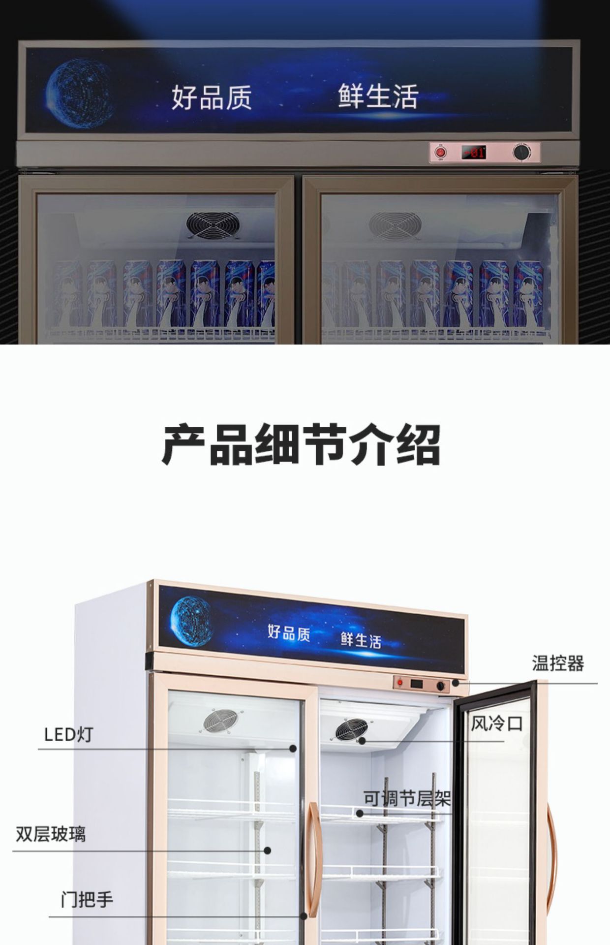 냉장 캐비닛 디스플레이 캐비닛 보존 캐비닛 수직 이중 도어 구리 튜브 상업용 음료 차가운 음료 야채 및 과일 캐비닛 냉동고스토어 가기
