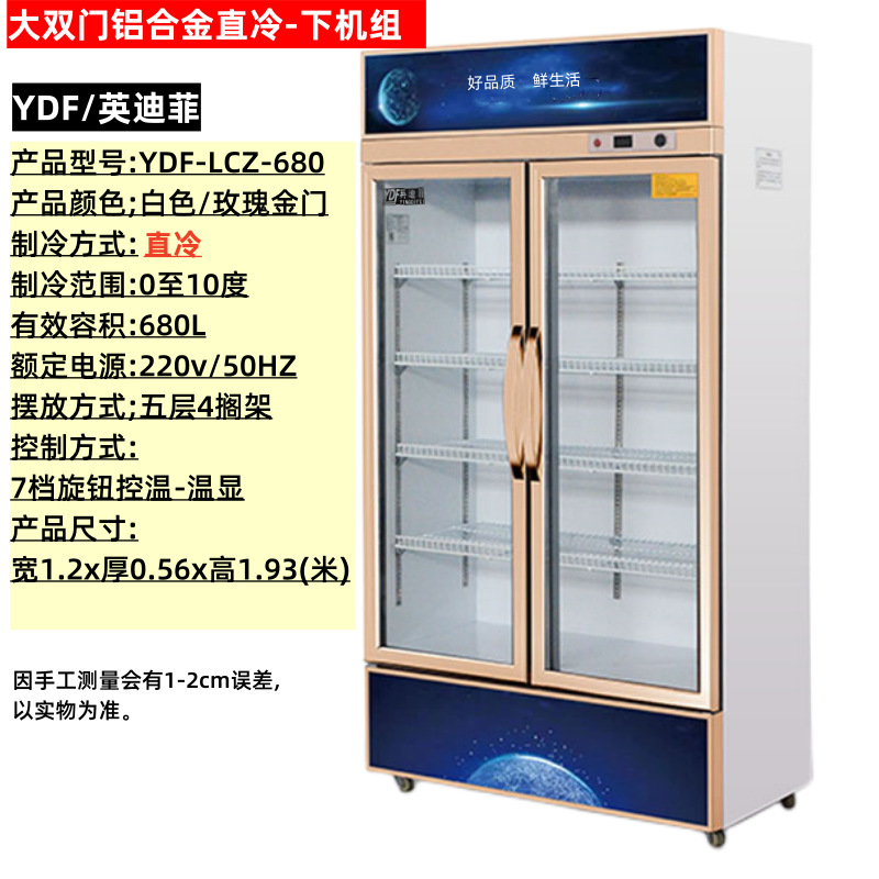 • 대형 이중 도어 로즈 골드 직냉식 및 온도 표시/너비 1.2*두께 0.56*높이 1.93(미터)