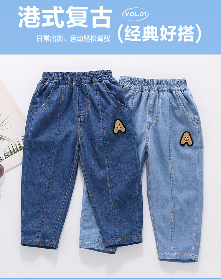 어린이 청바지 여름 얇은 소년 면 스트레이트 바지 올매치 소프트 울트라 얇은 모기 방지 바지스토어 가기