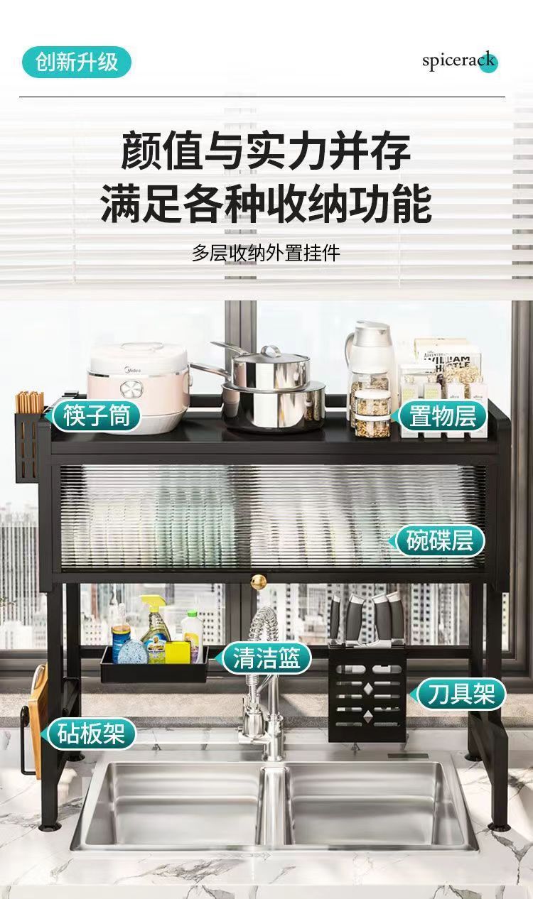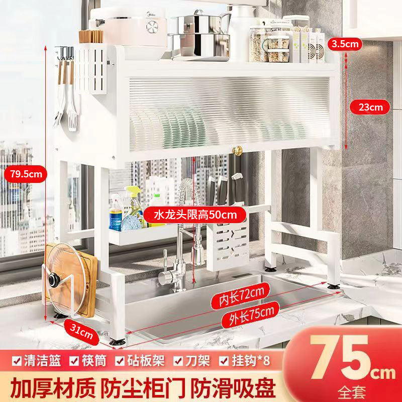 주방 싱크 저장 랙 가정용 접시 저장 싱크 먼지 방지 찬장 다기능 저장 드레인 랙