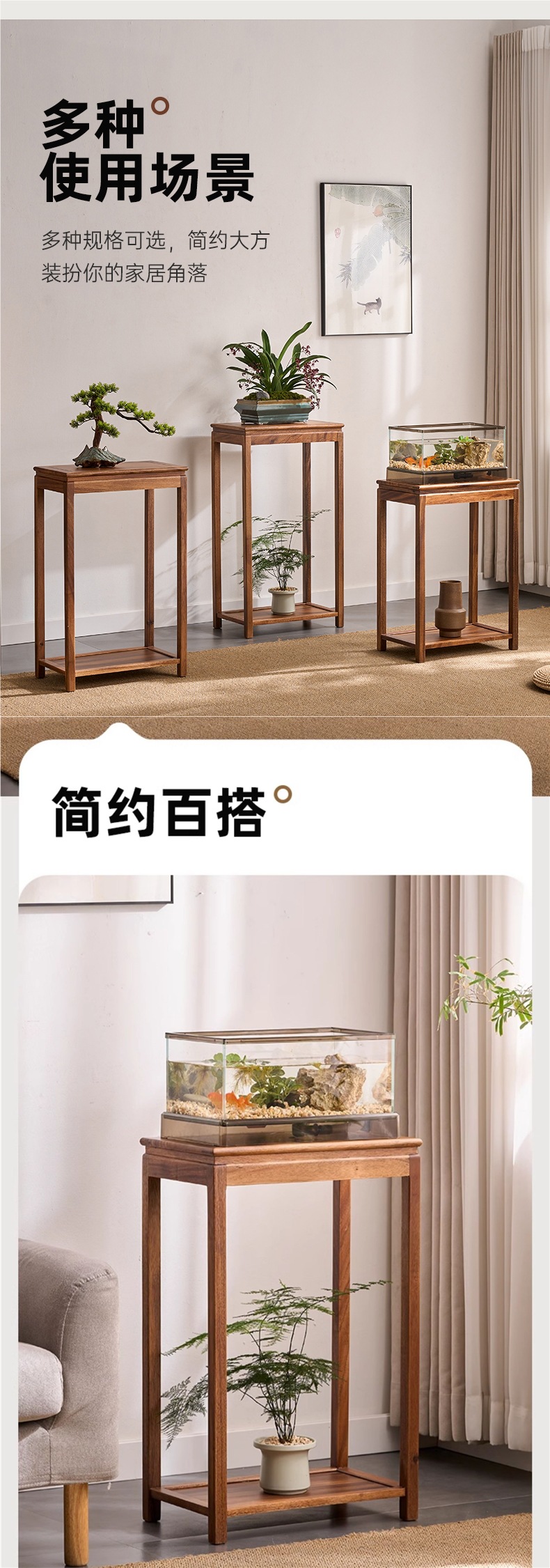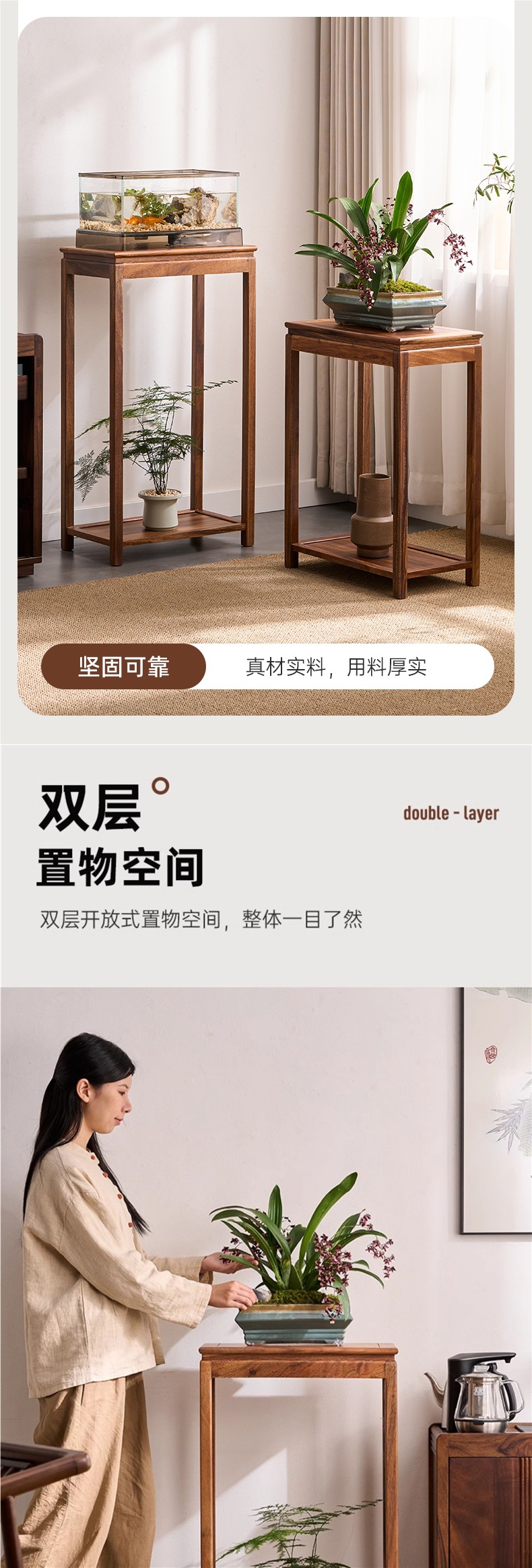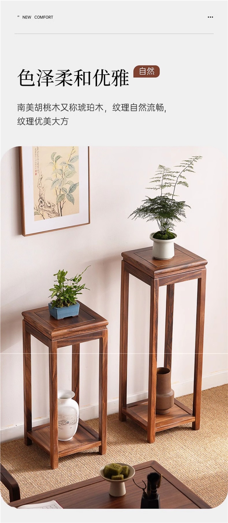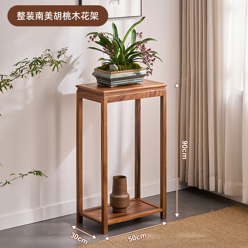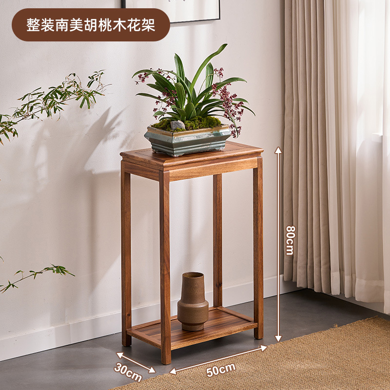 단단한 나무 꽃 랙 호두 모형 및 테논 풀 세트 꽃 테이블 새로운 중국 스타일 가정용 거실 발코니 꽃 테이블 실내 분재 랙