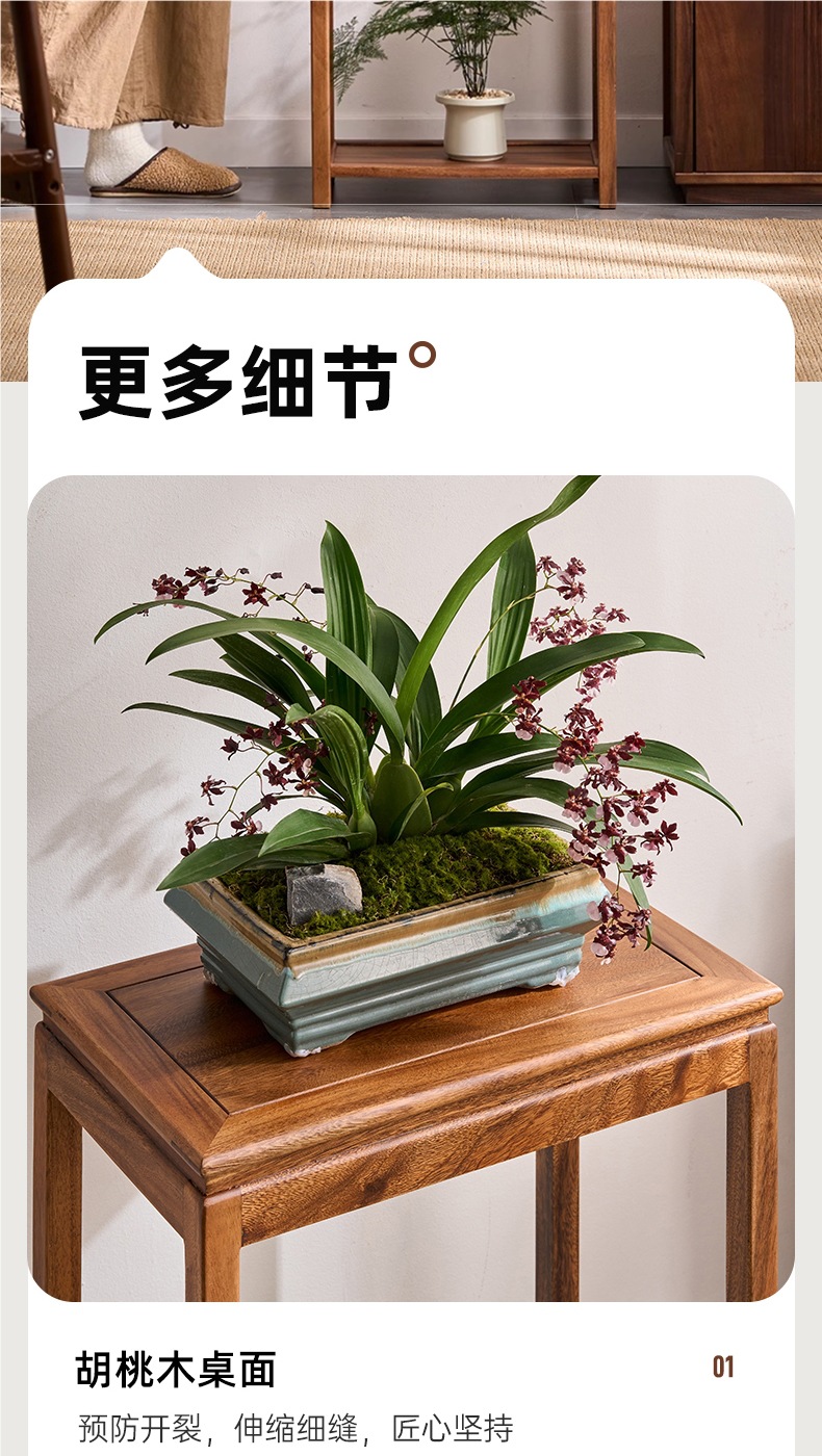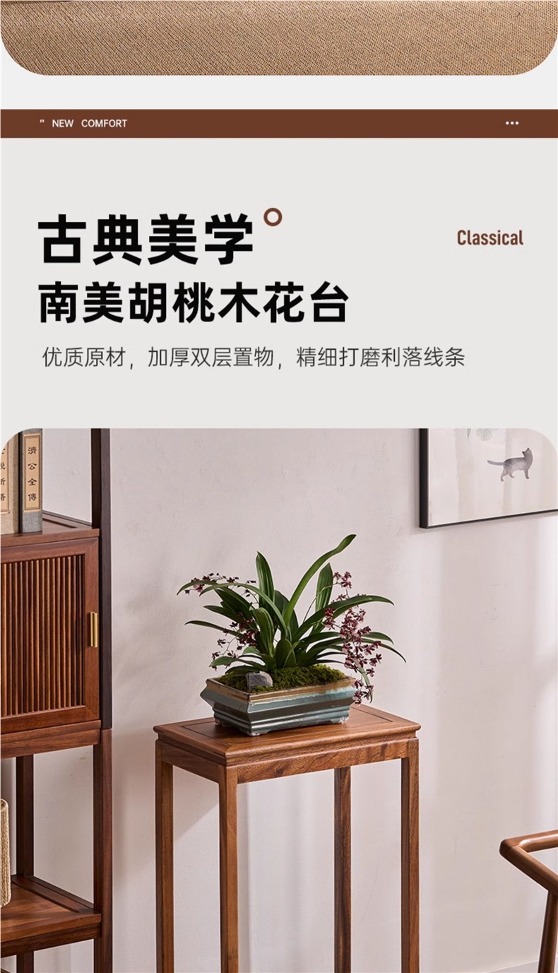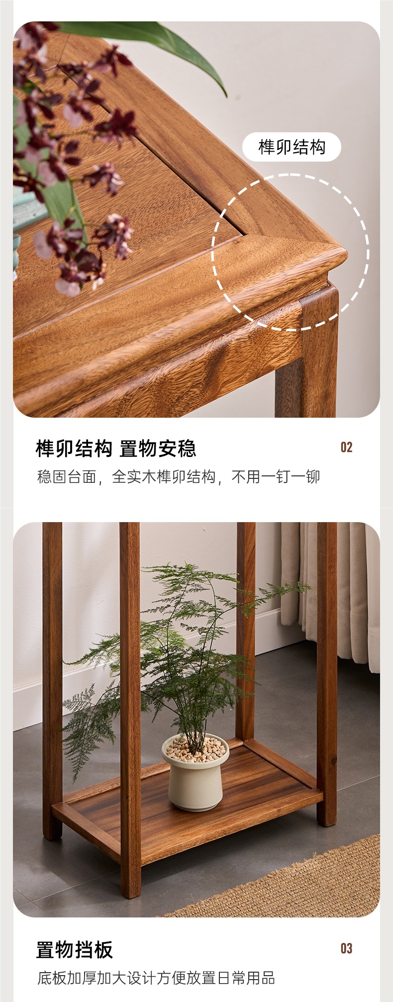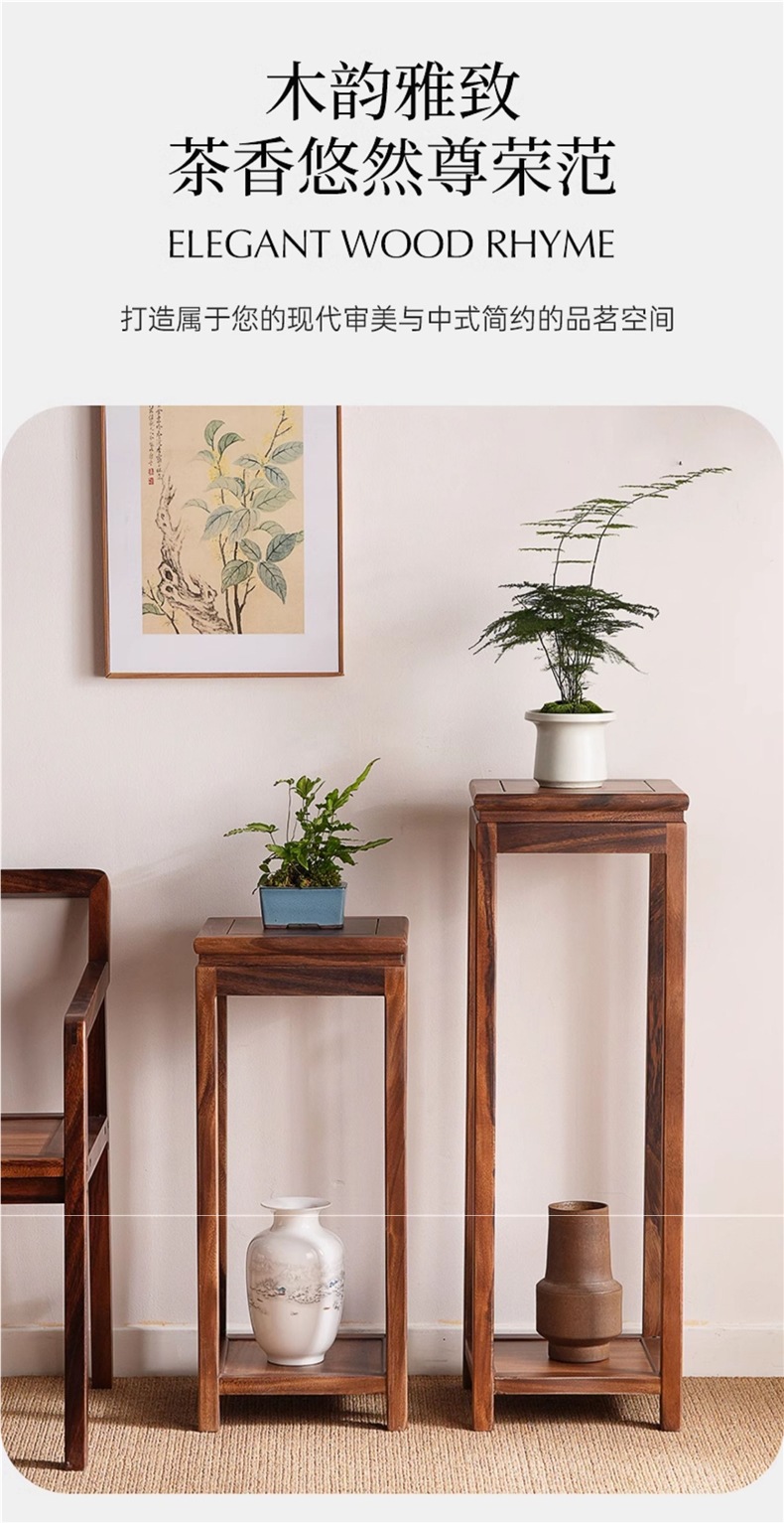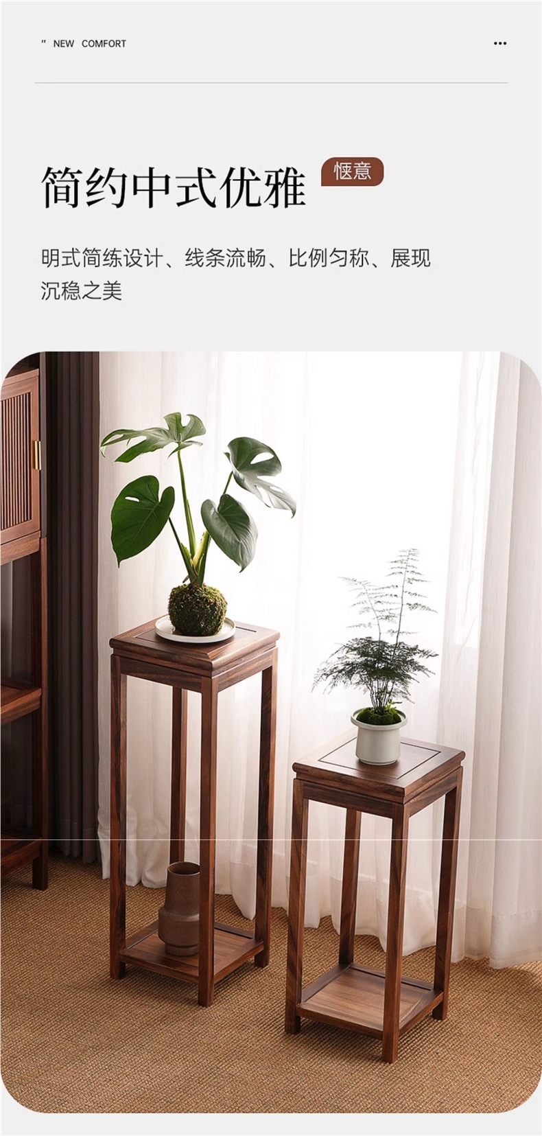 단단한 나무 꽃 랙 호두 모형 및 테논 풀 세트 꽃 테이블 새로운 중국 스타일 가정용 거실 발코니 꽃 테이블 실내 분재 랙
