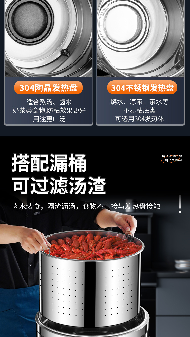 전기 수프 버킷 전기 난방 수프 버킷 스테인레스 스틸 상업용 죽 양동이 대용량 절인 수프 냄비 전기 요리 수프 냄비 양동이