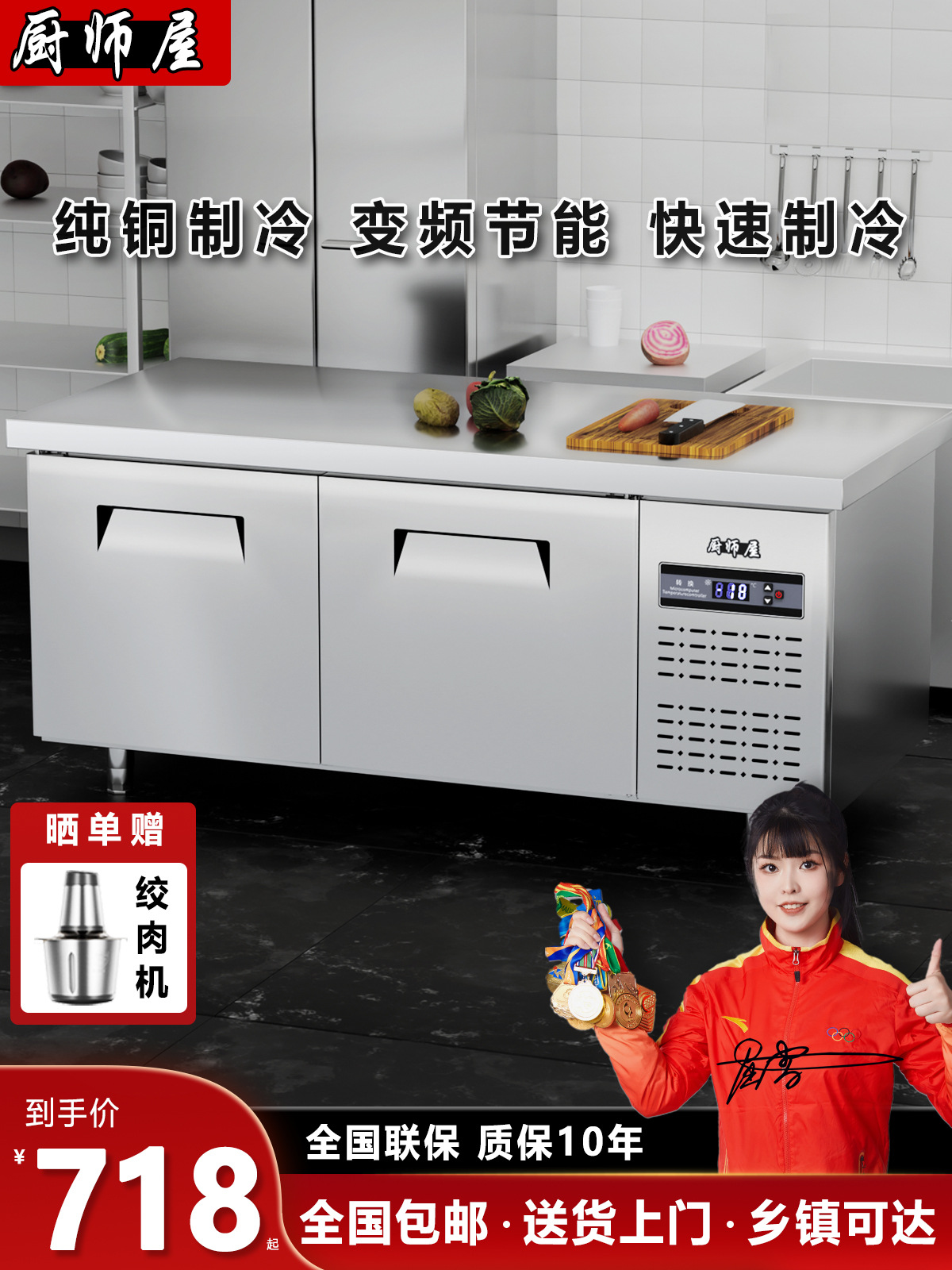 셰프 하우스 냉동 작업대 상업용 운영 데스크 냉동고 주방 냉장고 우유 차 바 플랫 콜드 디스플레이 캐비닛 냉장고스토어 가기
