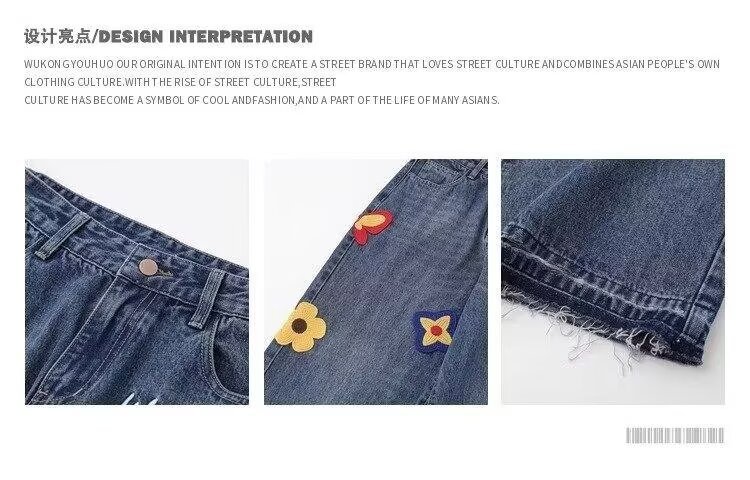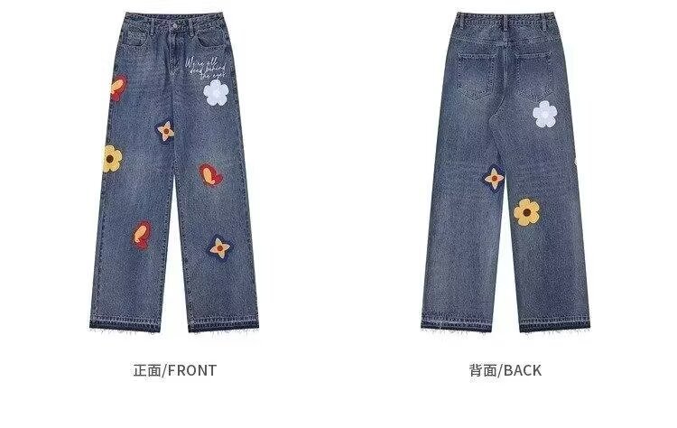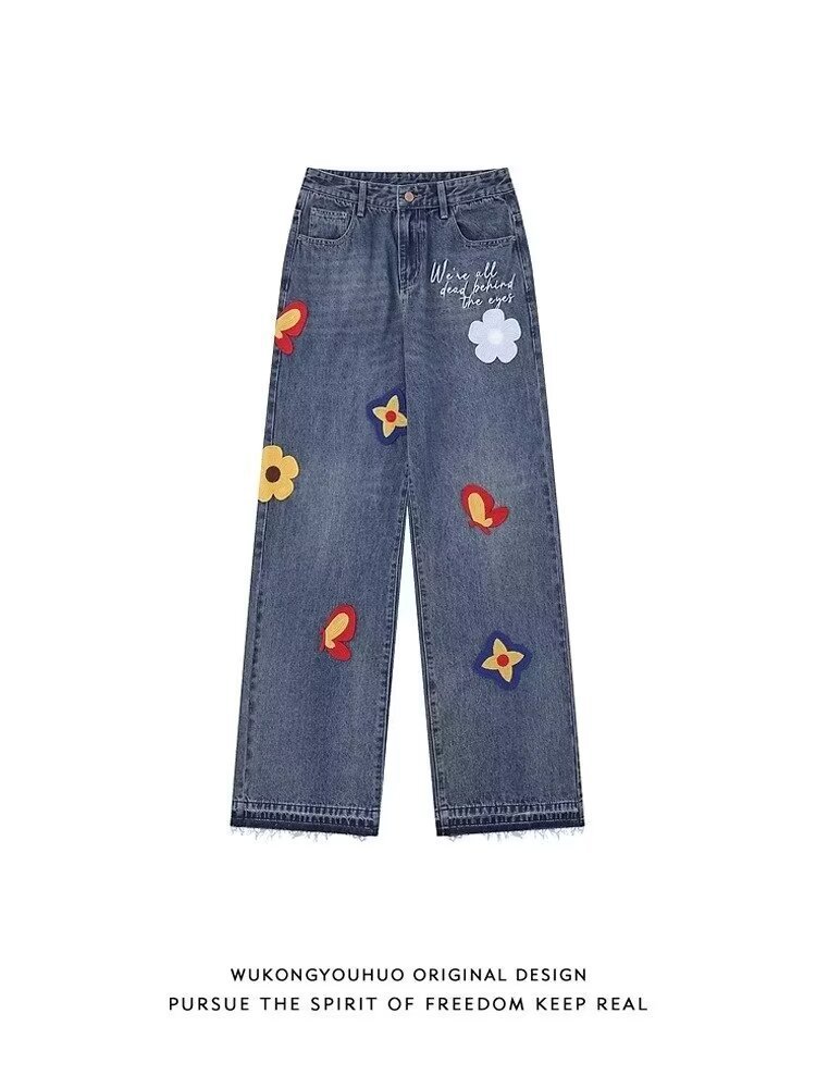 미국 거리 세척 오래된 자수 청바지 남성 봄과 가을 스트레이트 느슨한 유럽과 미국의 하이 스트리트 바이브 스타일 긴 바지