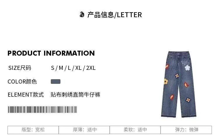 미국 거리 세척 오래된 자수 청바지 남성 봄과 가을 스트레이트 느슨한 유럽과 미국의 하이 스트리트 바이브 스타일 긴 바지스토어 가기