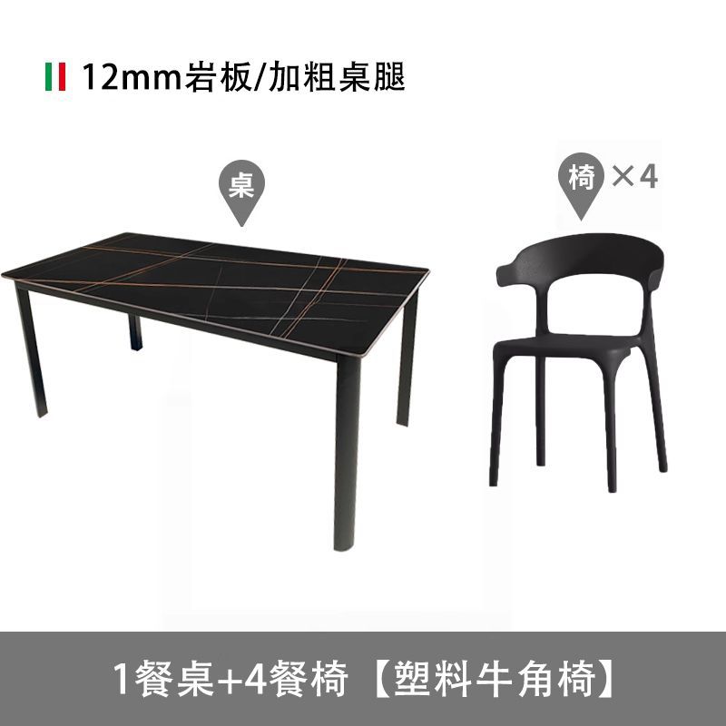 • 블랙 골드 탄소강 슬레이트 테이블 + 플라스틱 혼 의자 4개/아연 도금 및 녹 방지