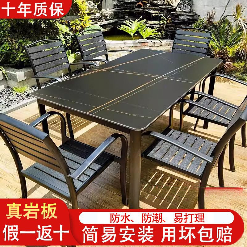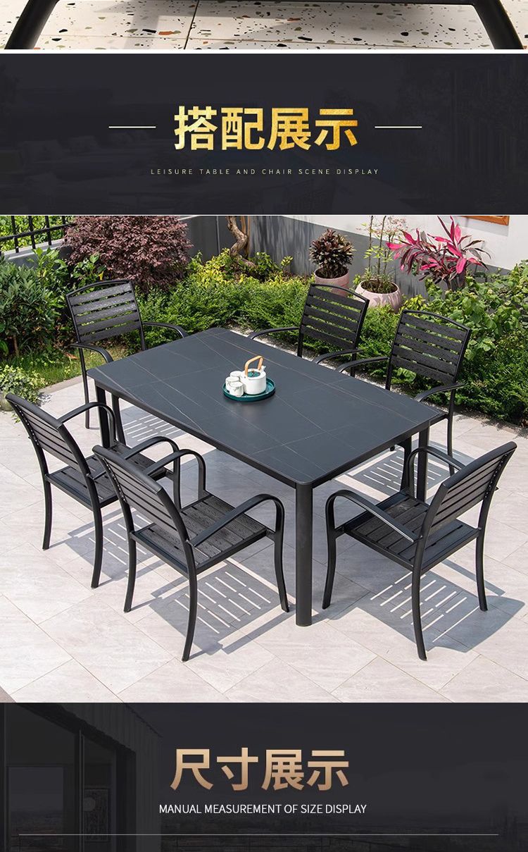 • 블랙 골드 탄소강 슬레이트 테이블 + 플라스틱 나무 의자*6/아연 도금 및 녹 방지
