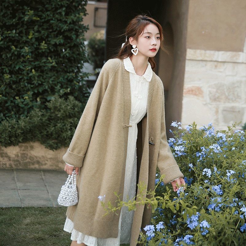 게으른 스타일 스웨터 코트 카디건 여성 중장 2025 가을과 겨울 새로운 레트로 느슨한 작은 니트 탑스토어 가기