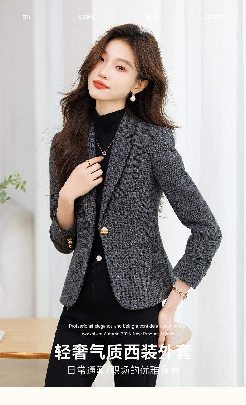 하이 엔드 센스 그레이 세트 재킷 여성 봄과 가을 2025 새로운 스타일 우아한 프라이드 스트리트 작은 남자 슬림 핏 작은 세트 탑스토어 가기