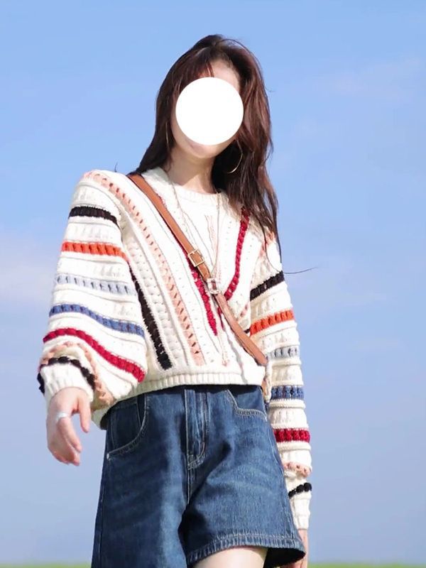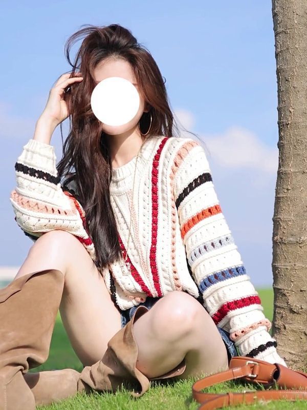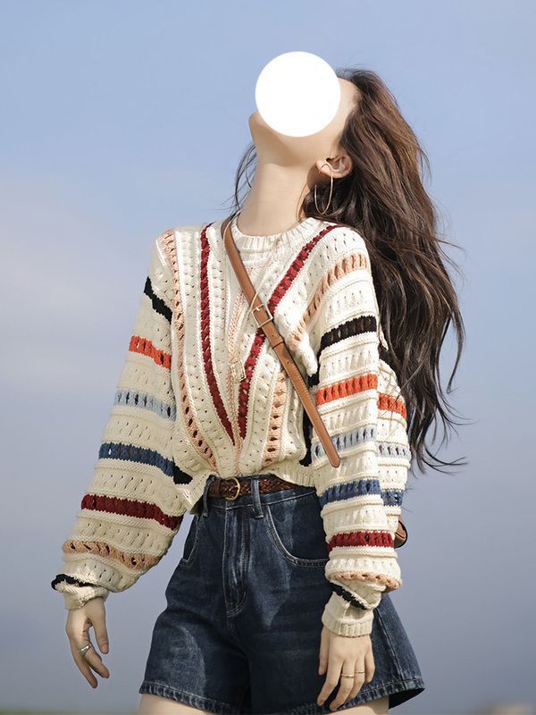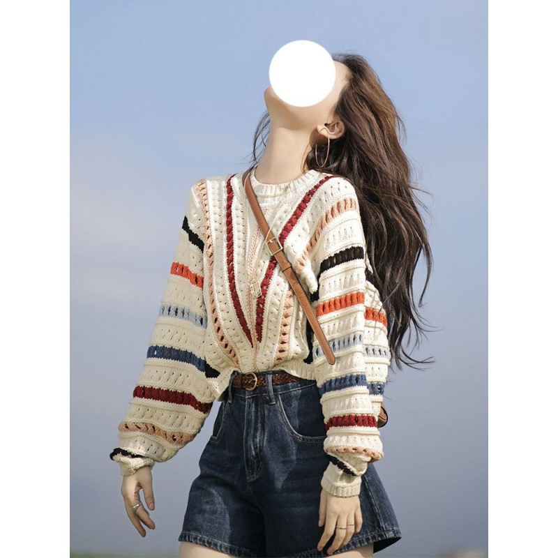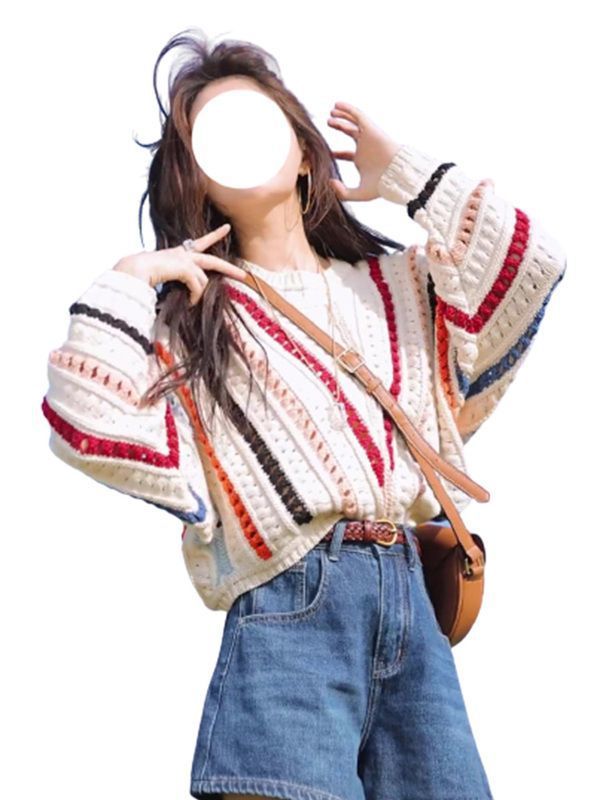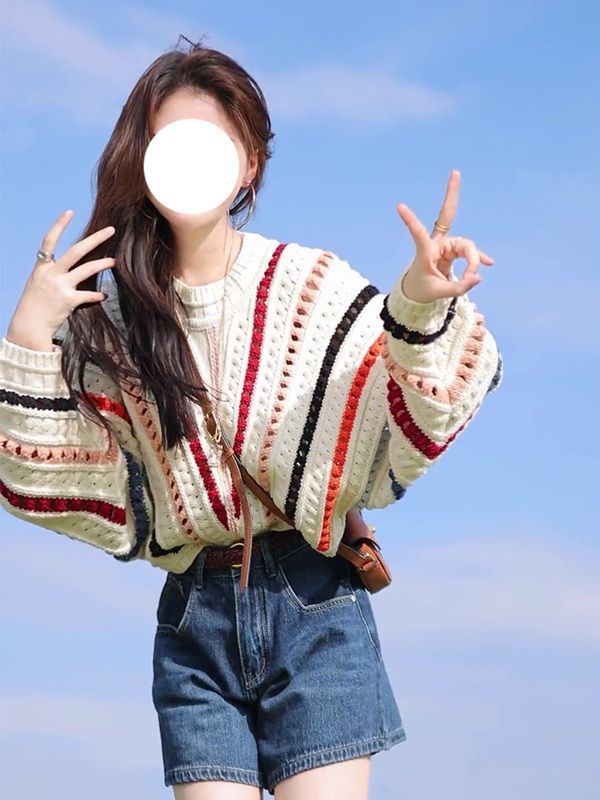 게으른 스타일 스웨터 여성의 봄과 가을 2025 새로운 폭발 한국 스타일 루즈 탑 여성 레인보우 스트라이프 니트 코트 여성스토어 가기