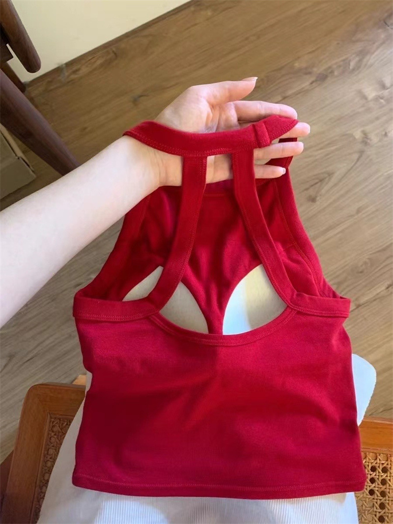 Pure, Backless Halter Camisole 여성용 여름 슬림 핏 짧은 내부 민소매 탑, 가슴 패드 착용