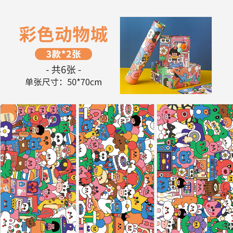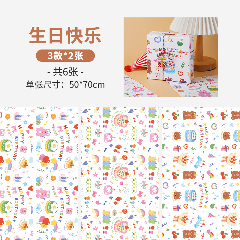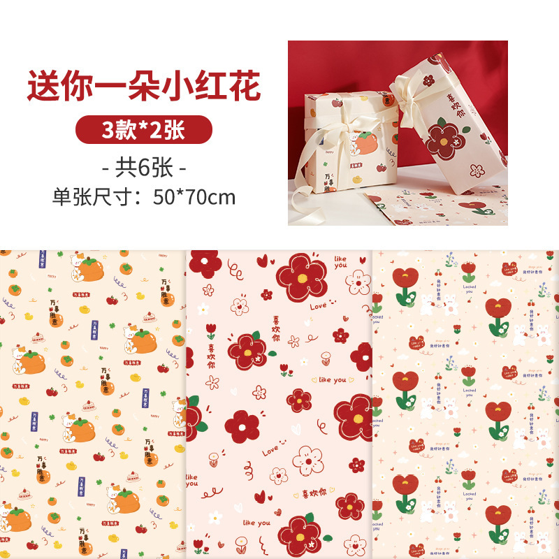 포장 종이 선물 상자 선물 종이 어린이 생일 빨간 선물 상자 종이 포장 재료 귀여운 만화 큰 크기 Lei Xin