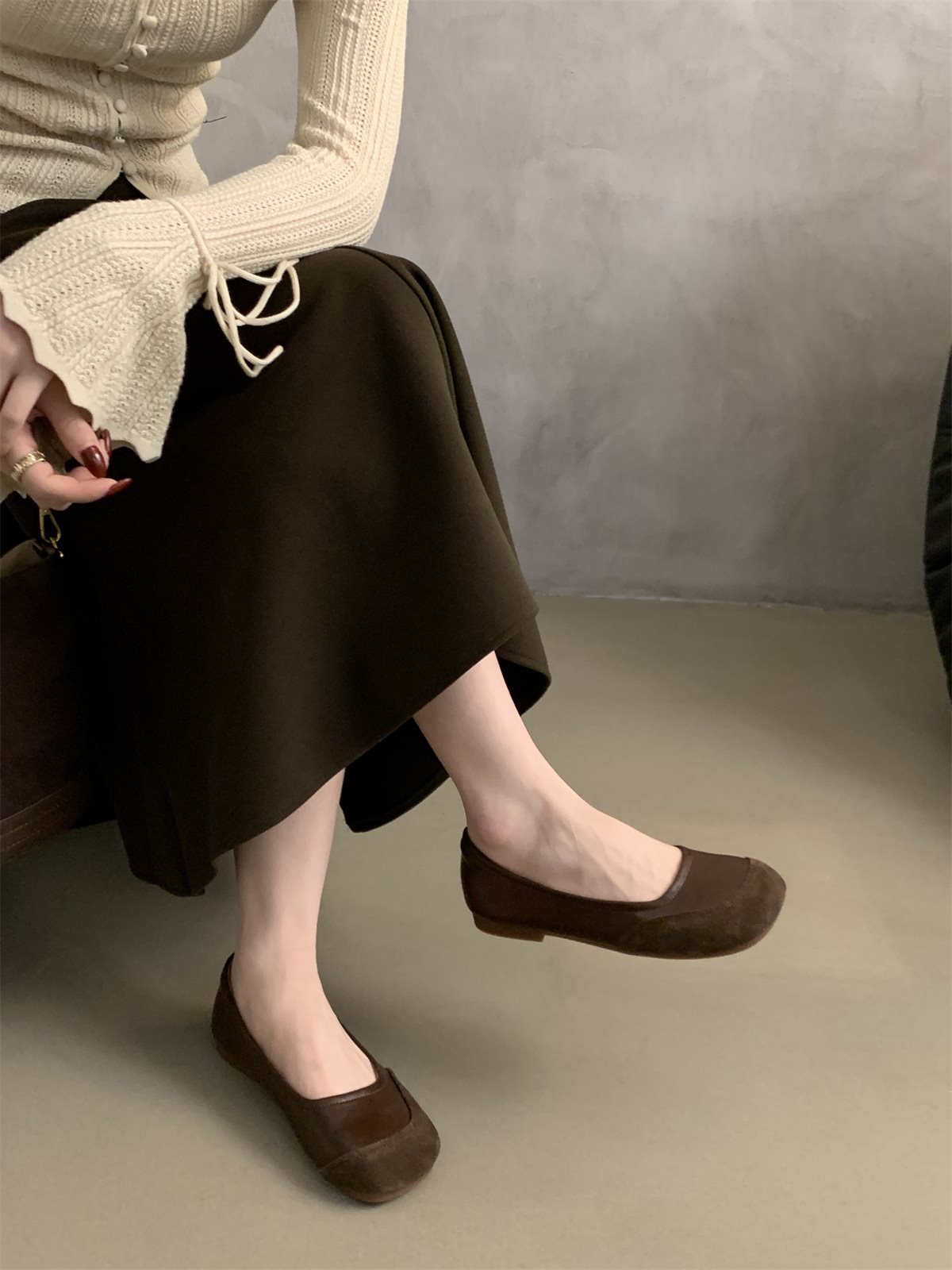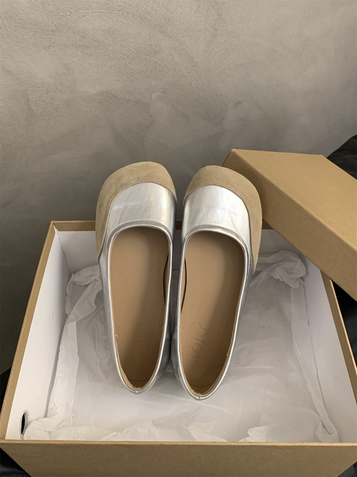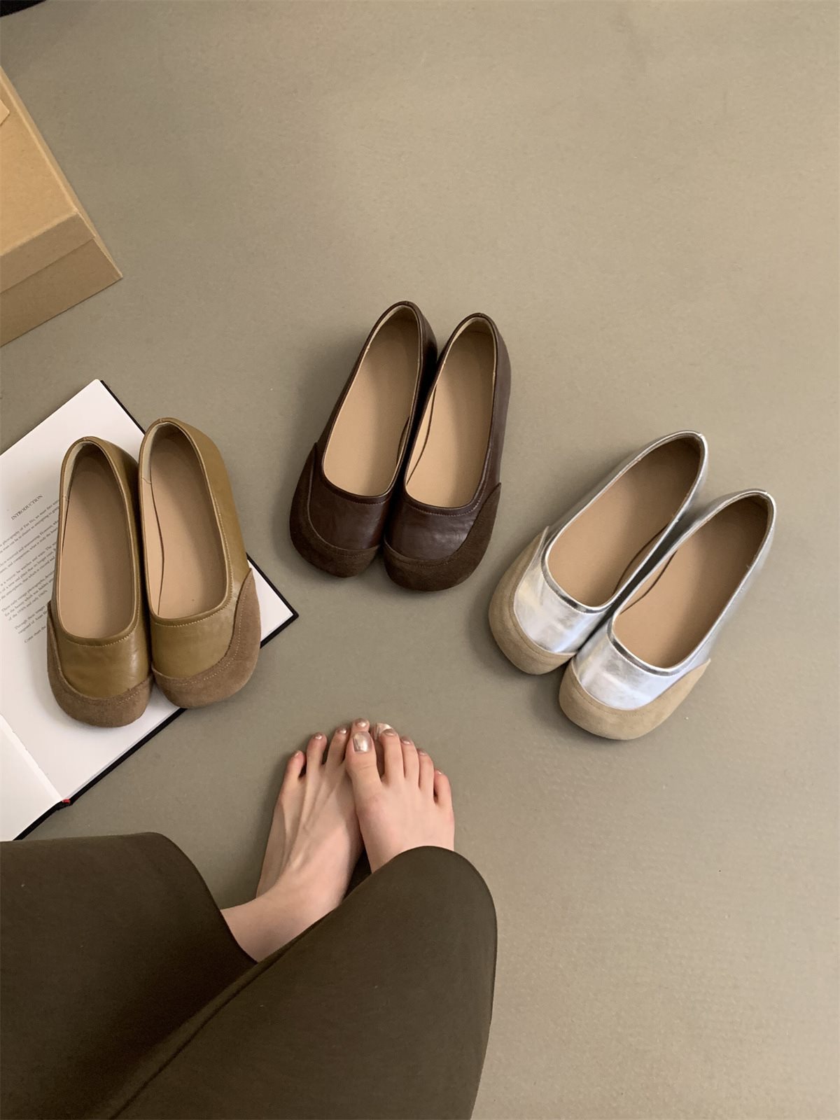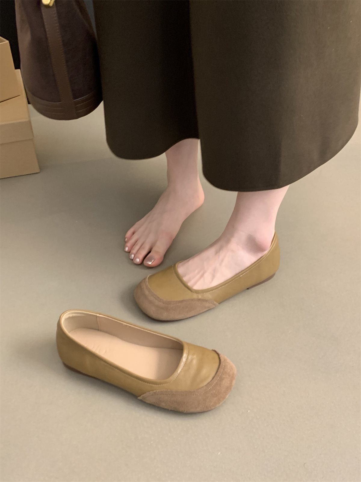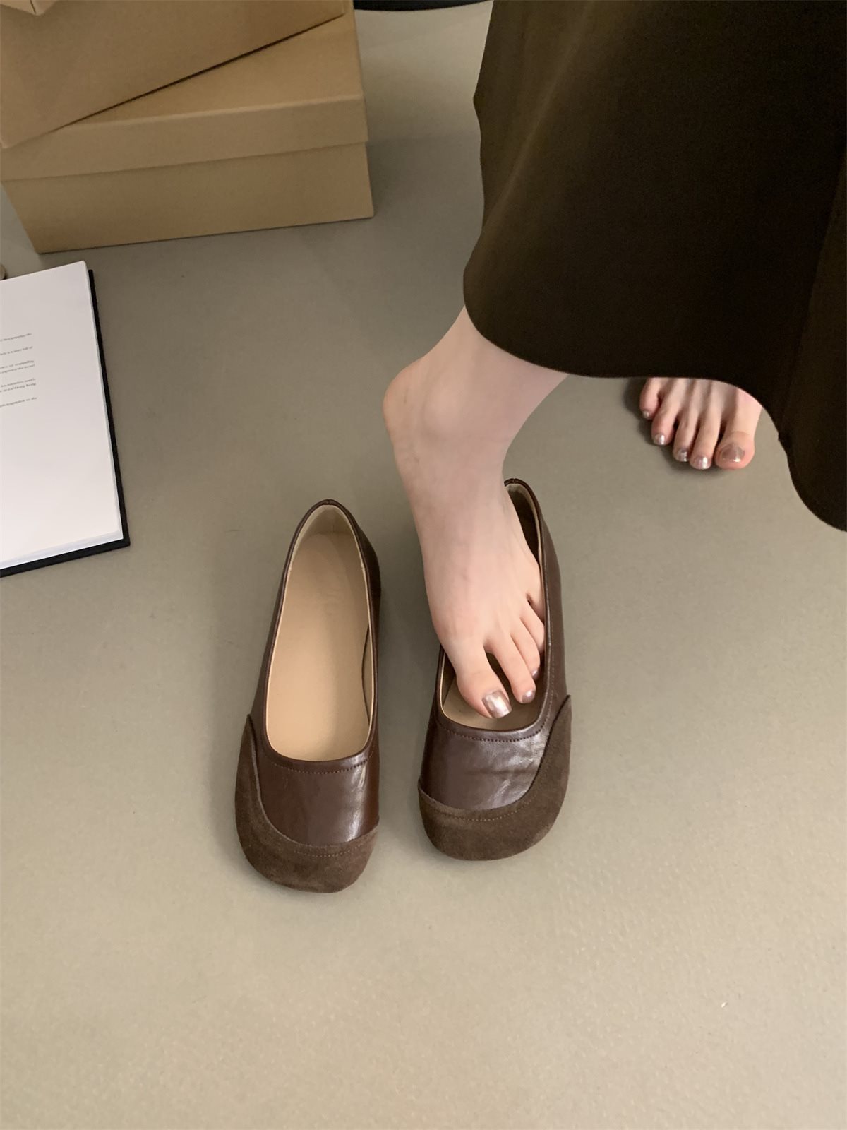 소프트 얕은 입 플랫 슈즈 한국 스타일 스티칭 소 가죽 밀크 슈즈 스퀘어 헤드 여성의 봄 뉴 컬러 2024스토어 가기