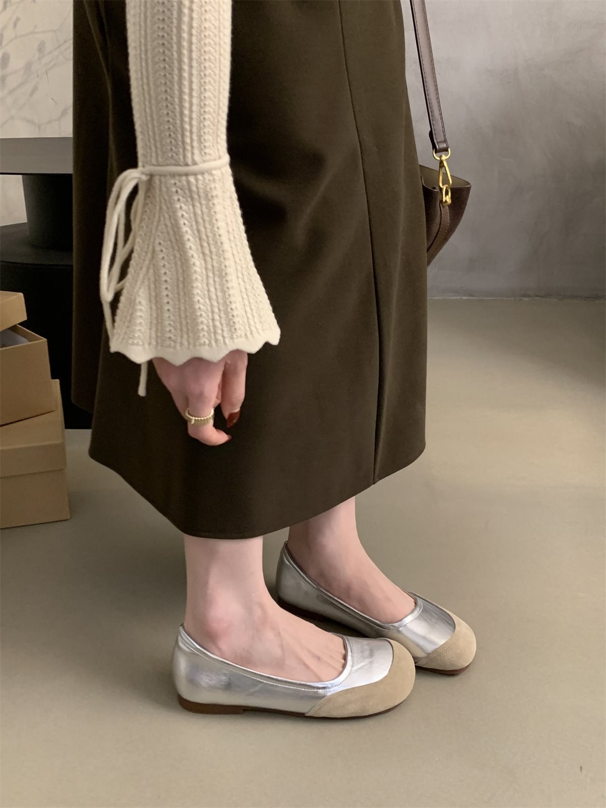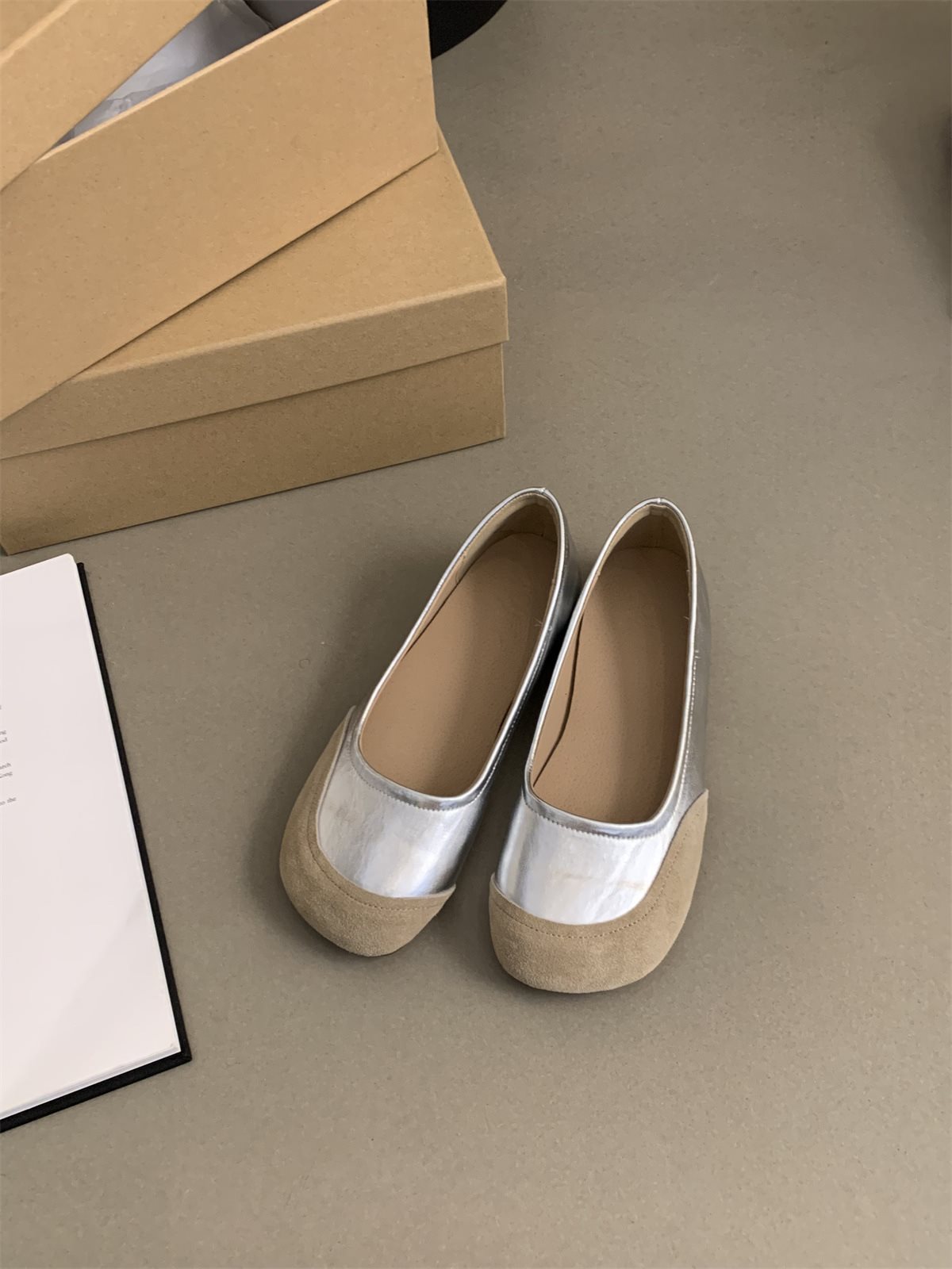 소프트 얕은 입 플랫 슈즈 한국 스타일 스티칭 소 가죽 밀크 슈즈 스퀘어 헤드 여성의 봄 뉴 컬러 2024