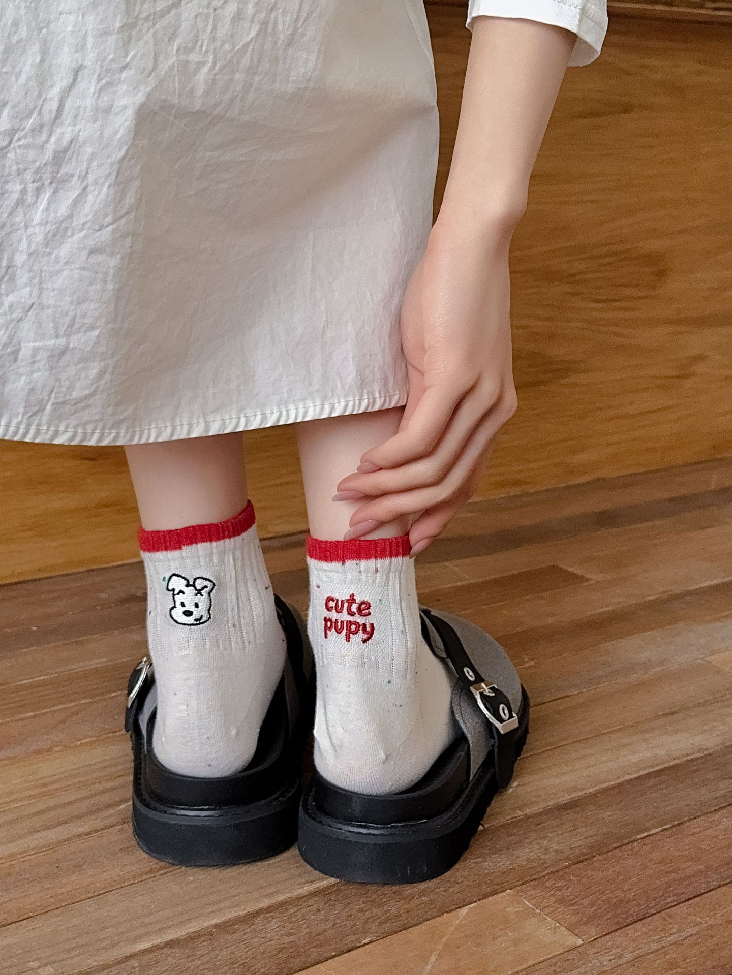자수 강아지 편지 AB 짧은 양말 여성의 봄과 여름 얇은 메쉬 통기성 땀 여성 양말 흡수 면 양말스토어 가기