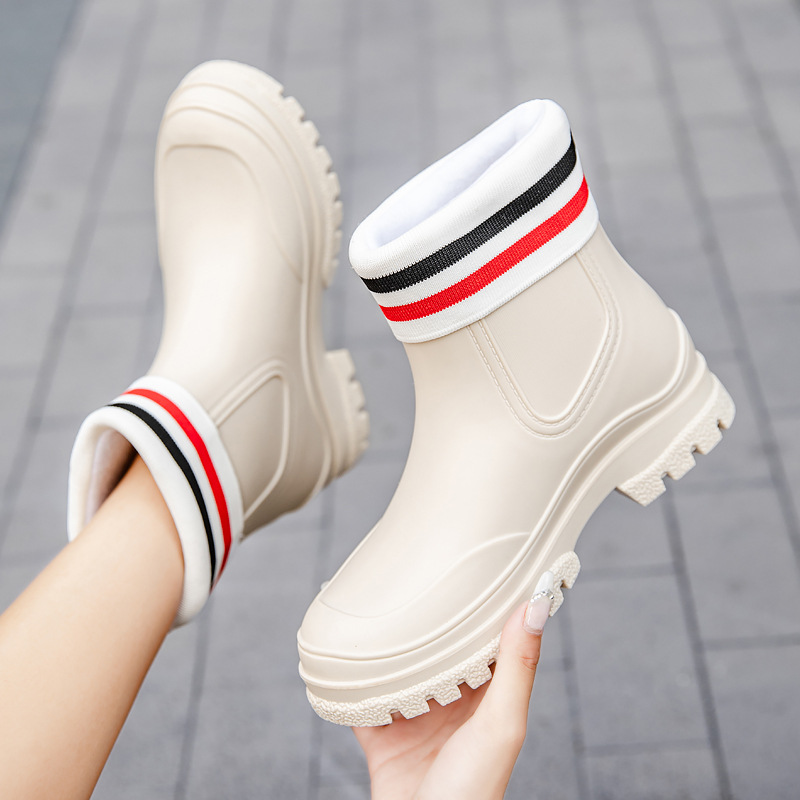국경 간 재고 숙녀 새로운 비 신발 야외 작업 고무 신발 가벼운 미끄럼 방지 주방 오버 슈즈 헤어스토어 가기