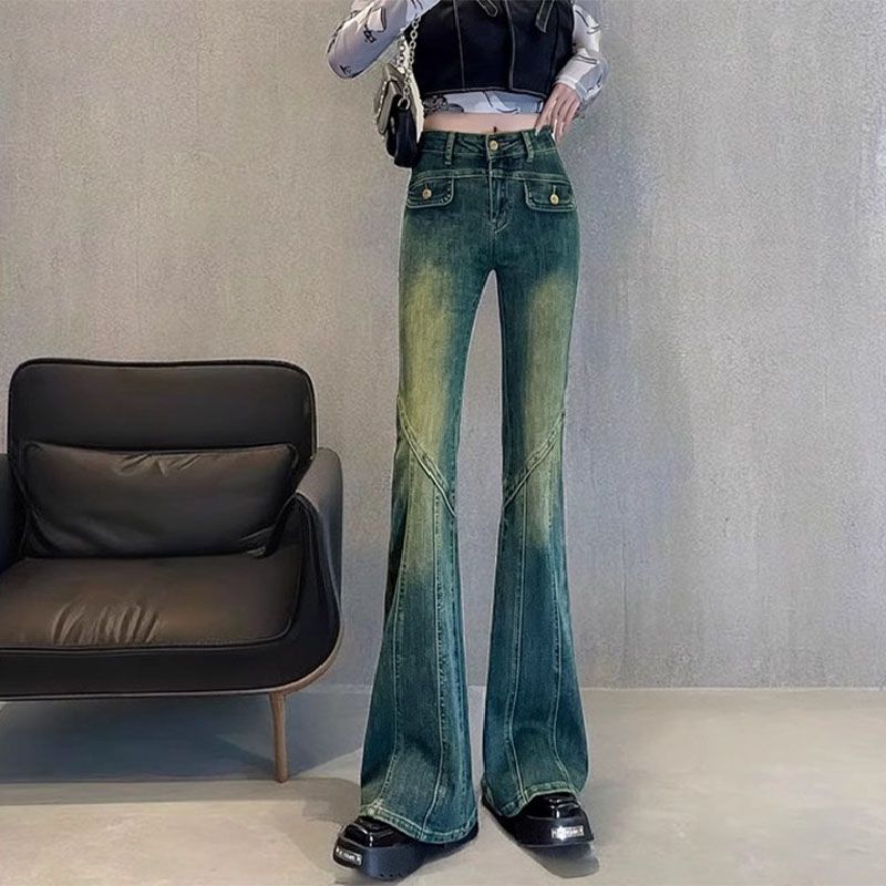 Micro-La Jeans 스트레치 새로운 슬림 2025 레트로 블루 틈새 여성의 캐주얼 높은 허리 플라 바지 그림스토어 가기