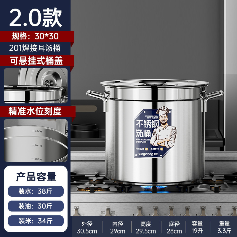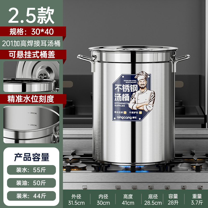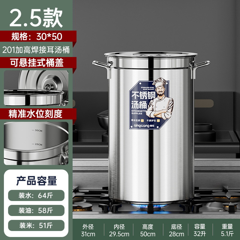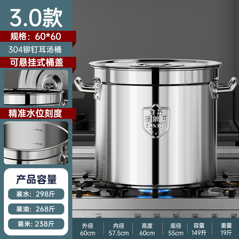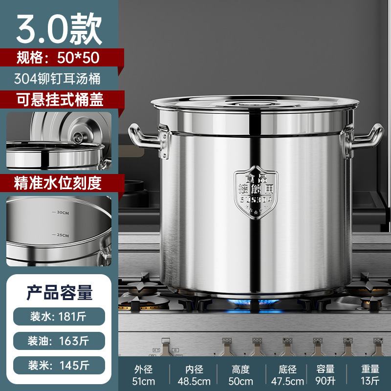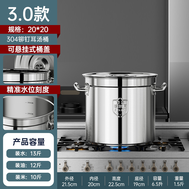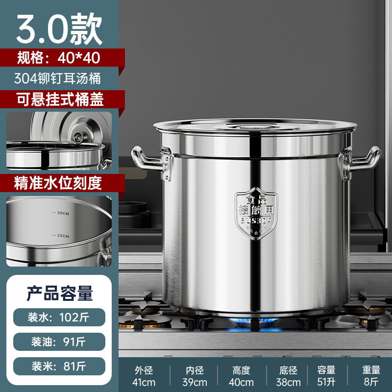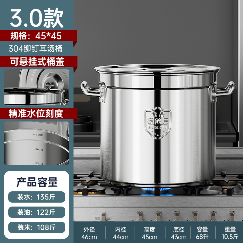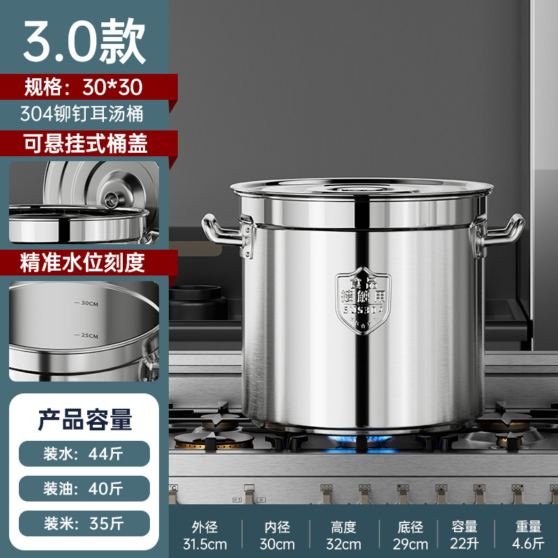 304 양동이 스테인리스 양동이 뚜껑 상업적인 수프 버킷 버킷 할로겐 버킷 스튜 냄비 큰 수용량 두꺼운 가정용 Pengde