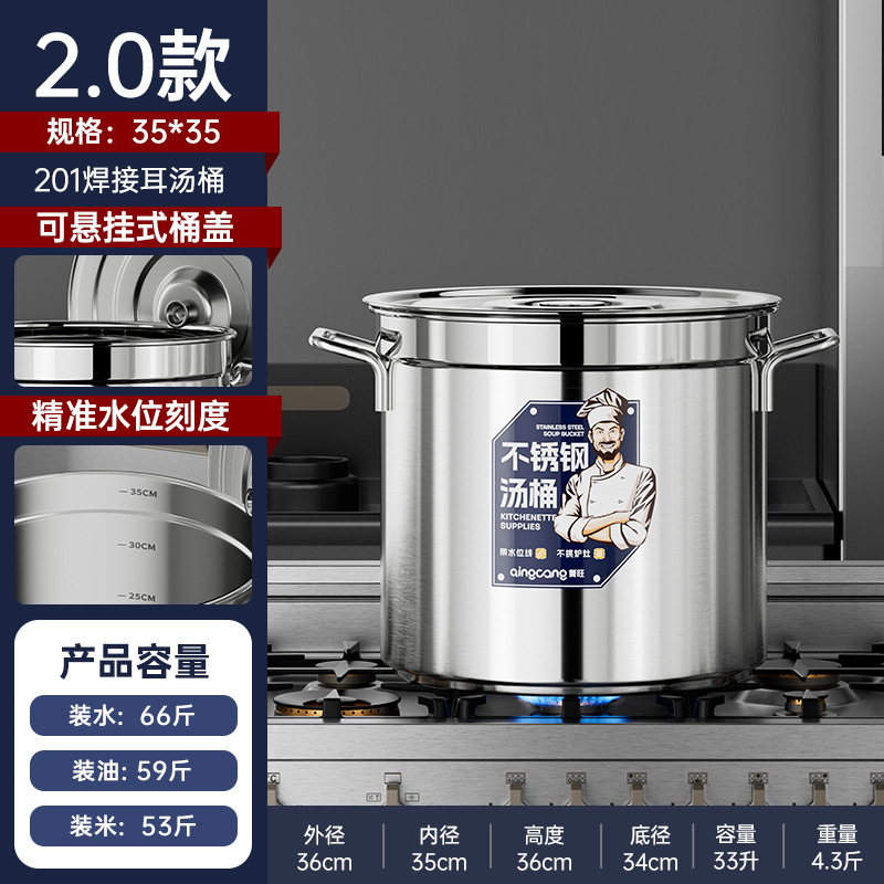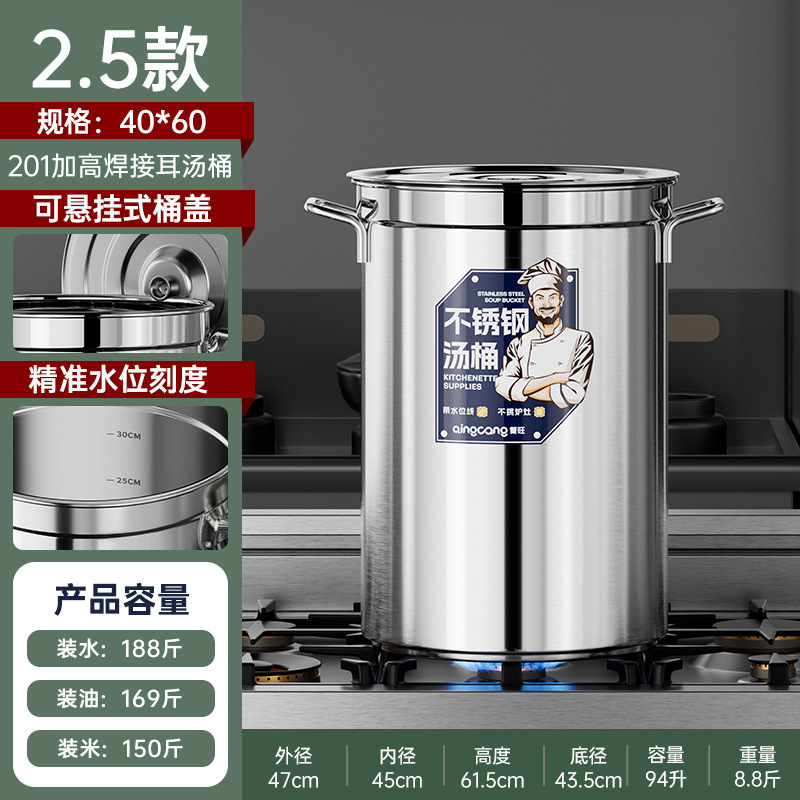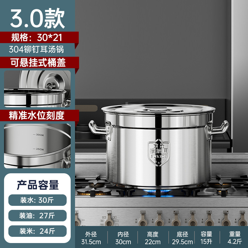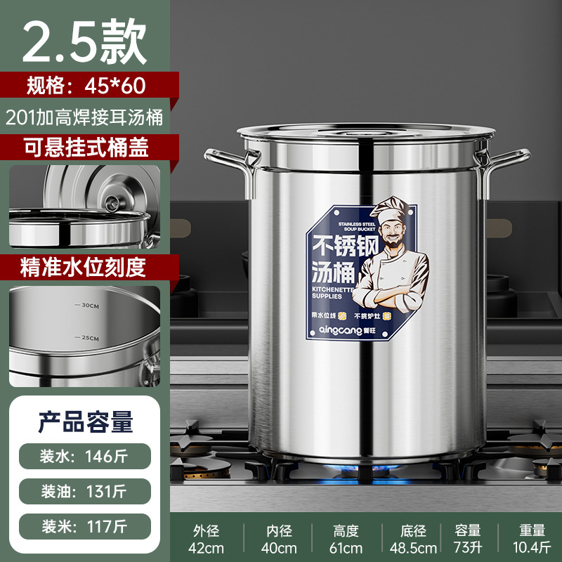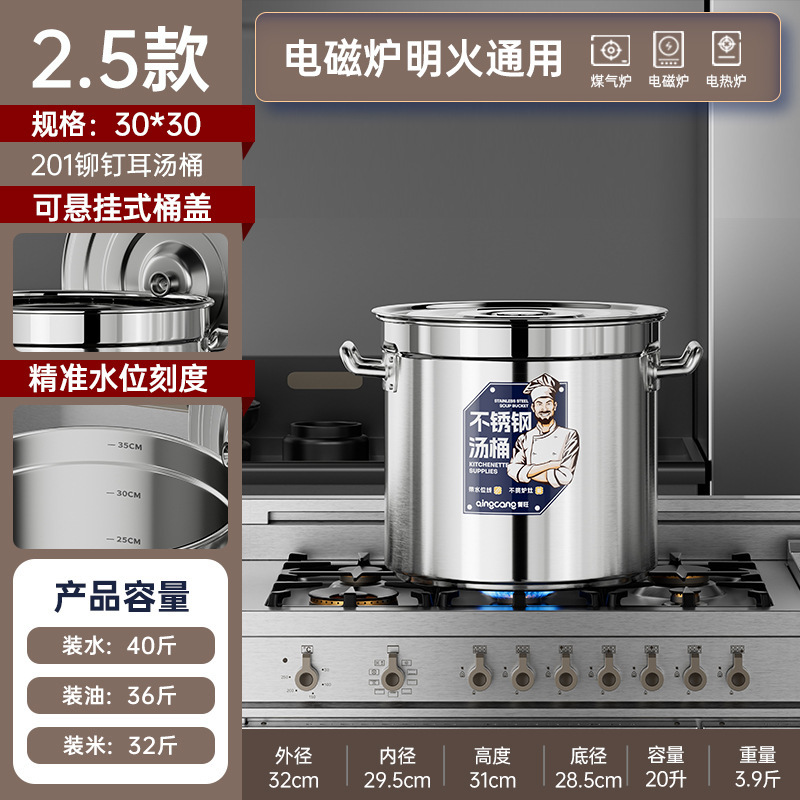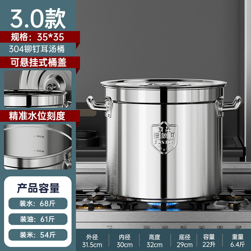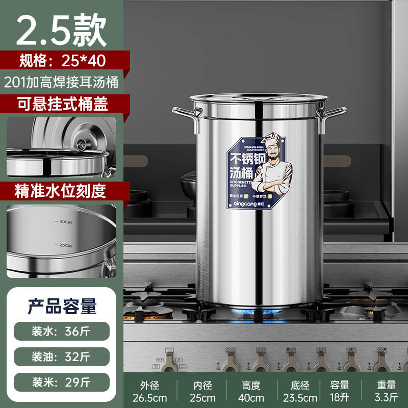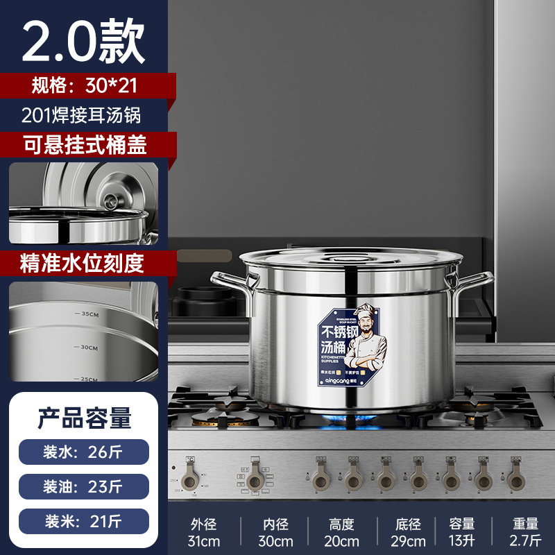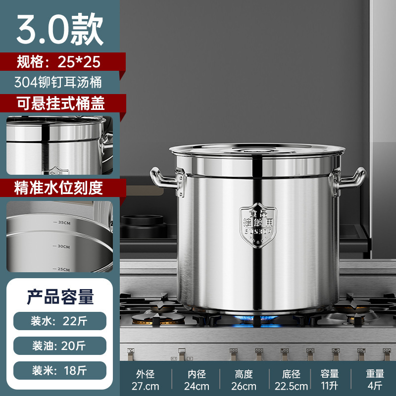 304 양동이 스테인리스 양동이 뚜껑 상업적인 수프 버킷 버킷 할로겐 버킷 스튜 냄비 큰 수용량 두꺼운 가정용 Pengde