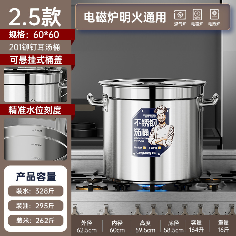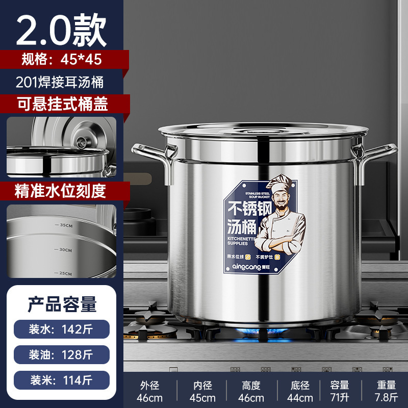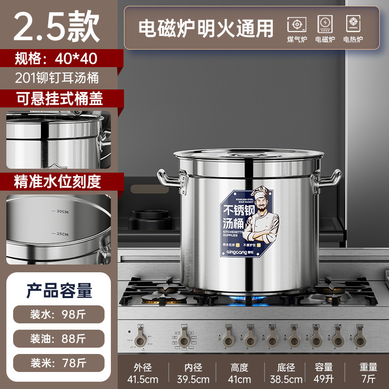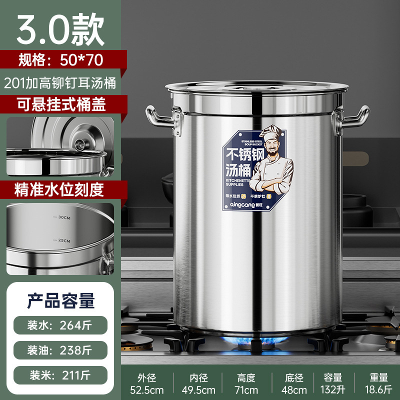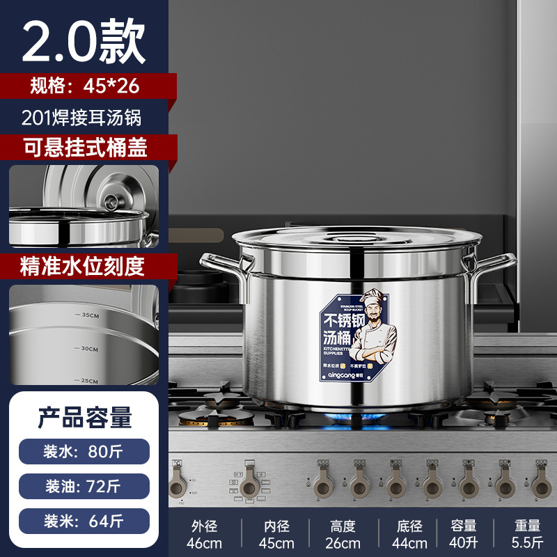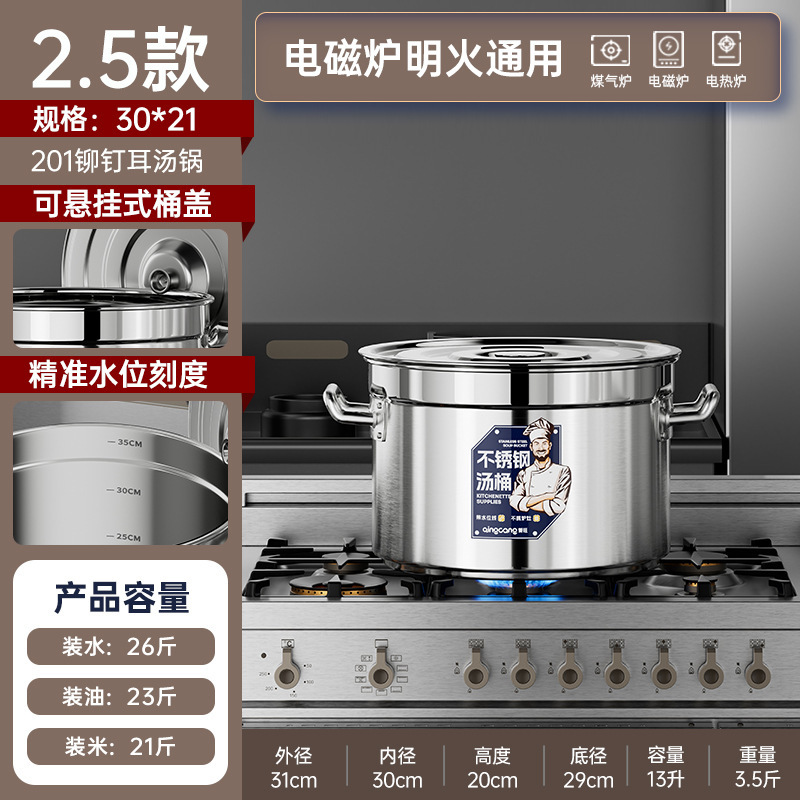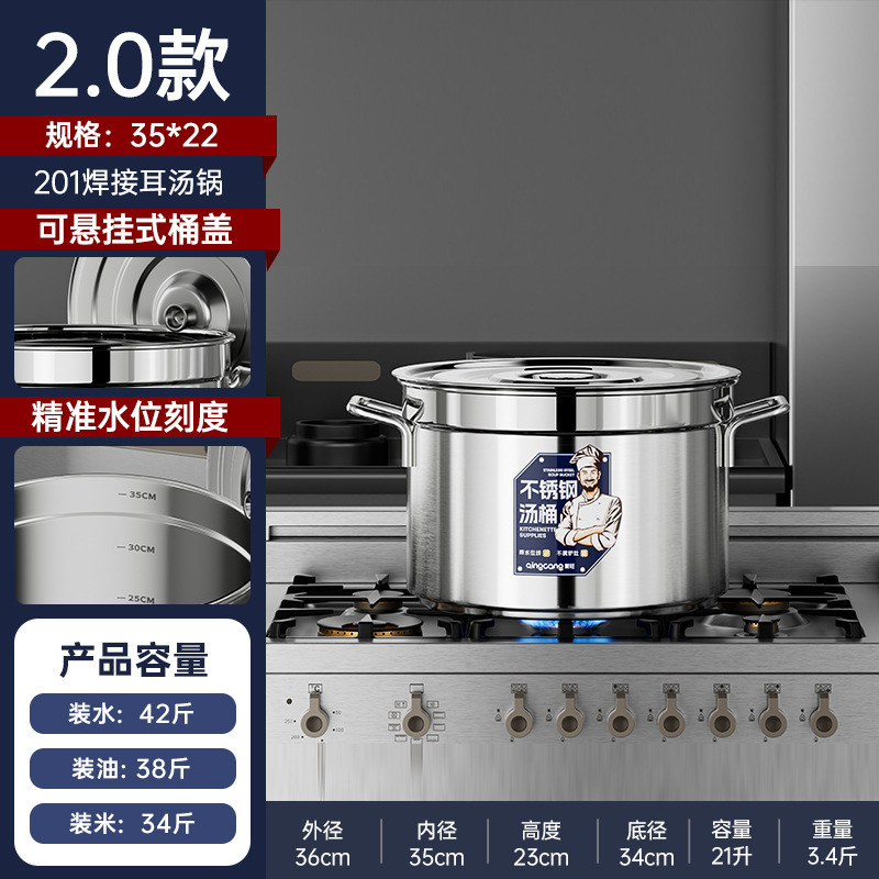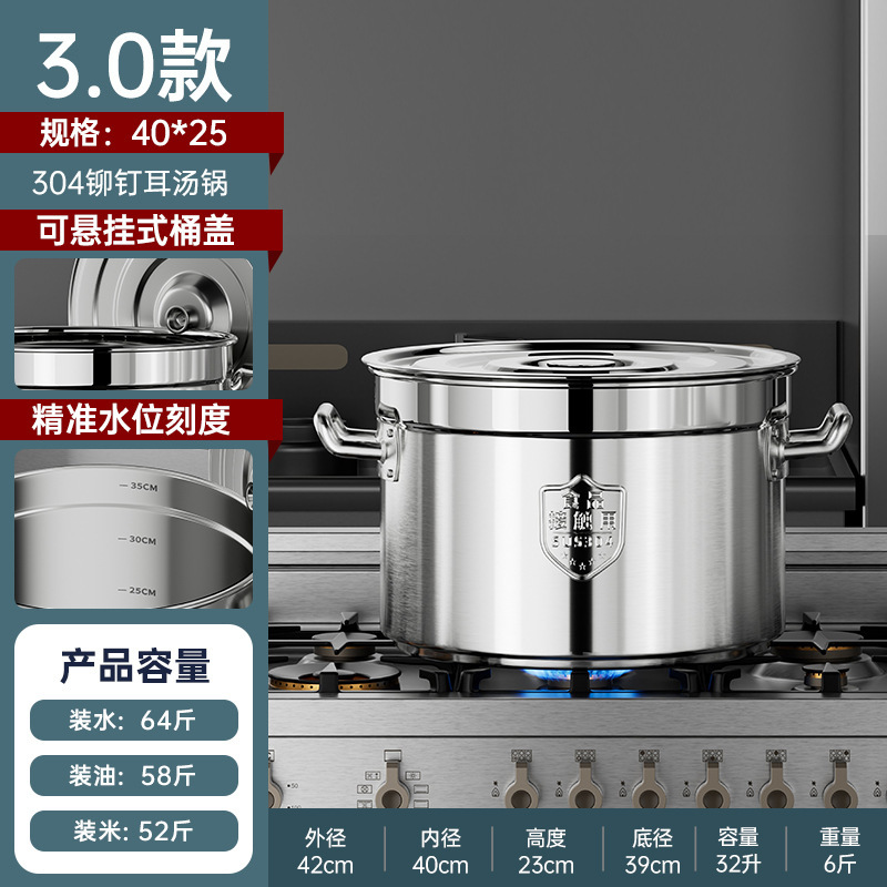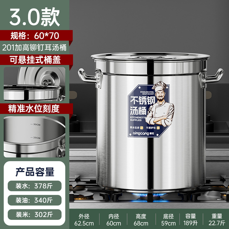 304 양동이 스테인리스 양동이 뚜껑 상업적인 수프 버킷 버킷 할로겐 버킷 스튜 냄비 큰 수용량 두꺼운 가정용 Pengde