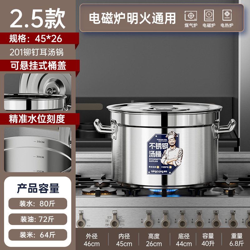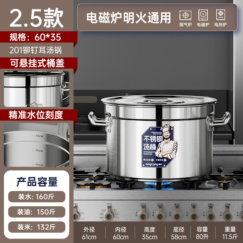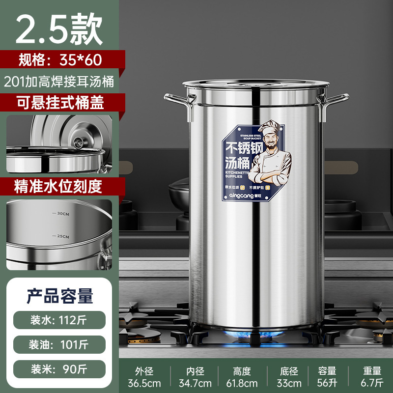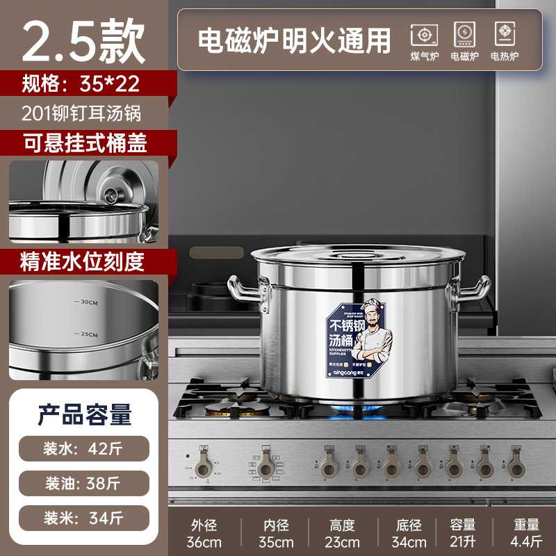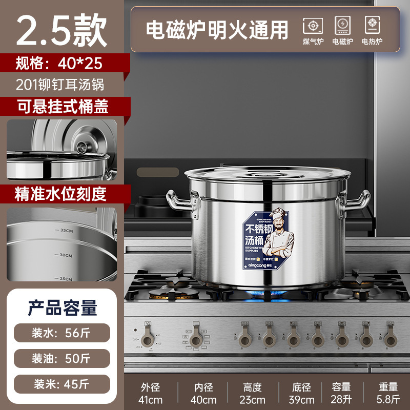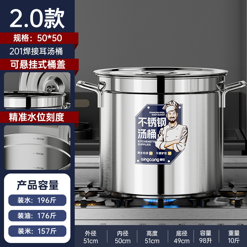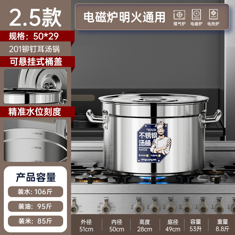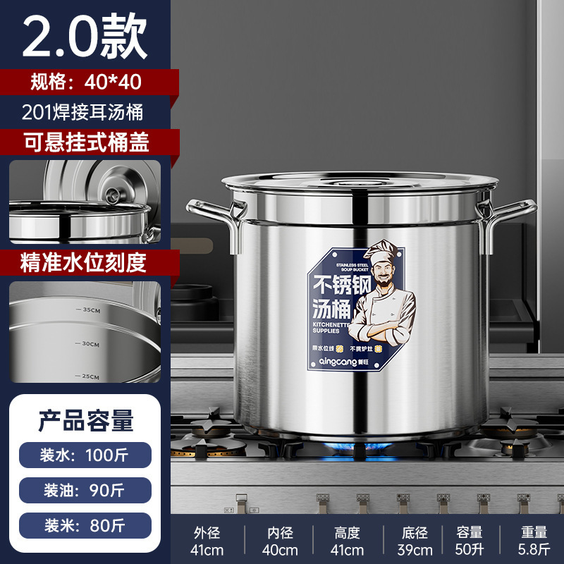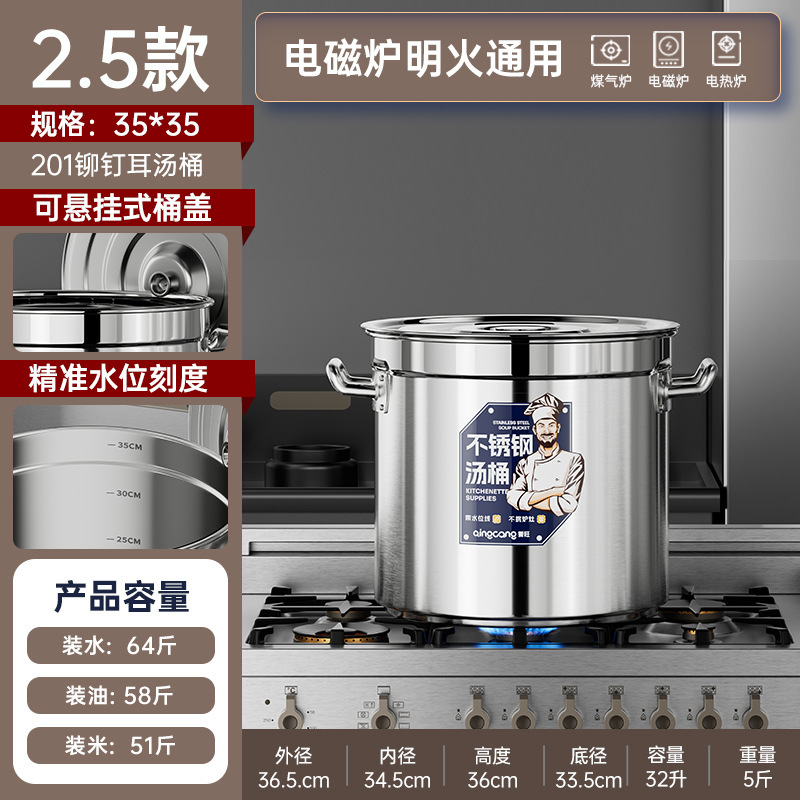 304 양동이 스테인리스 양동이 뚜껑 상업적인 수프 버킷 버킷 할로겐 버킷 스튜 냄비 큰 수용량 두꺼운 가정용 Pengde