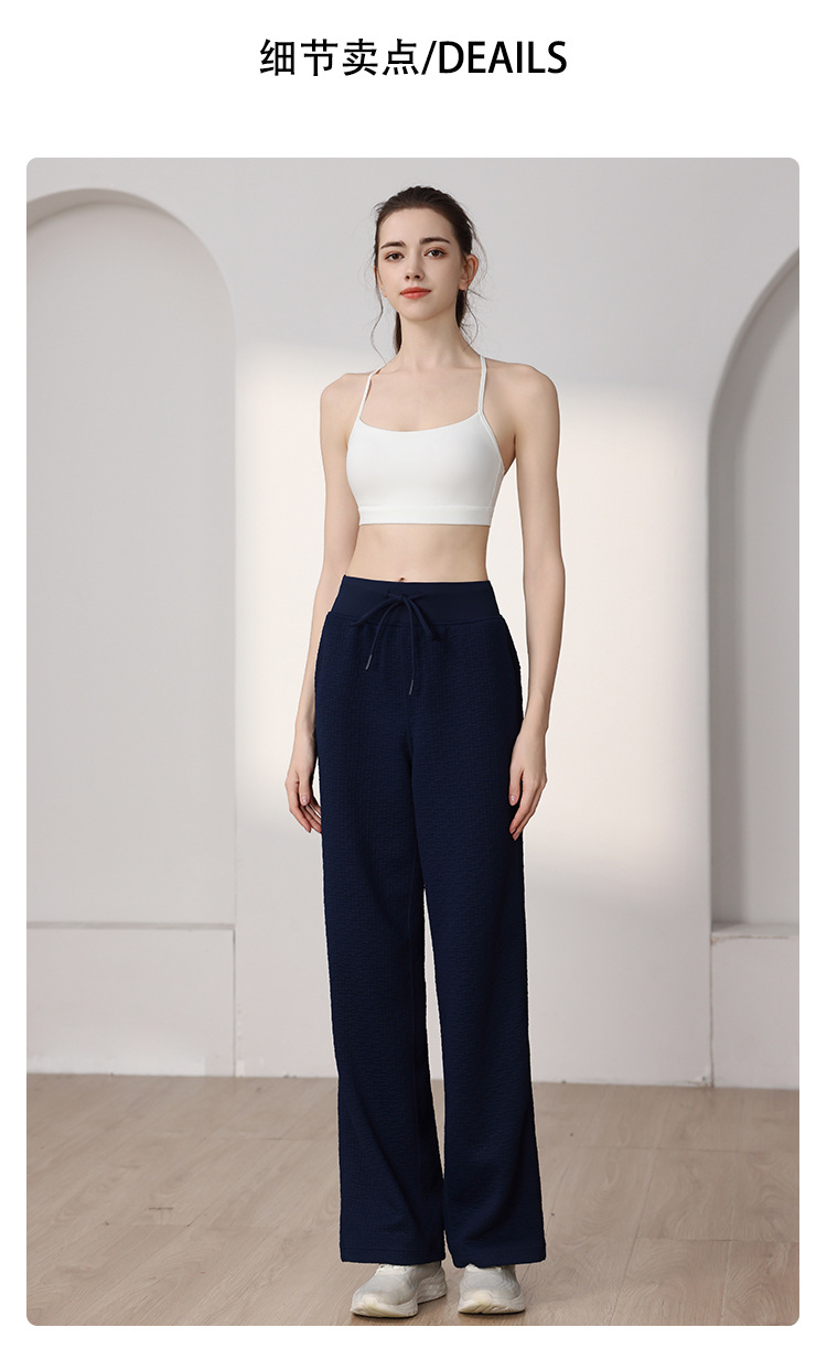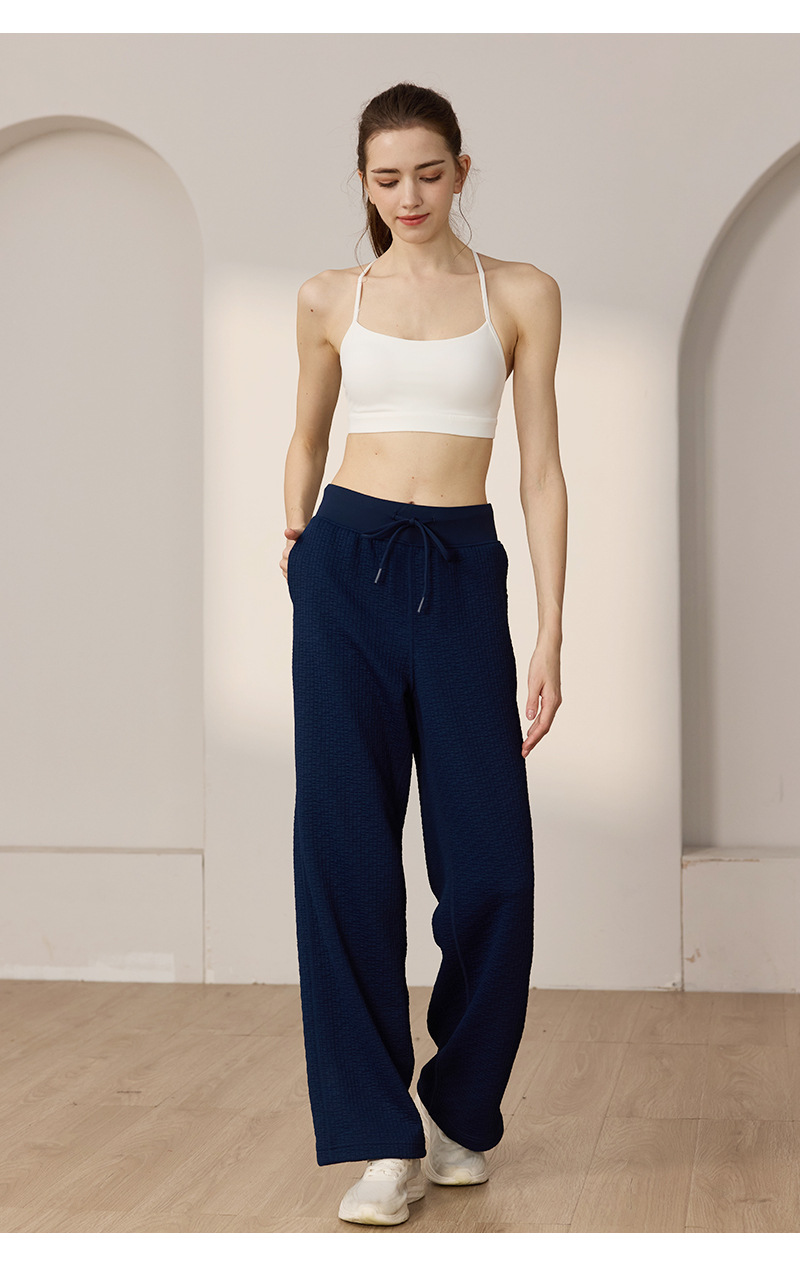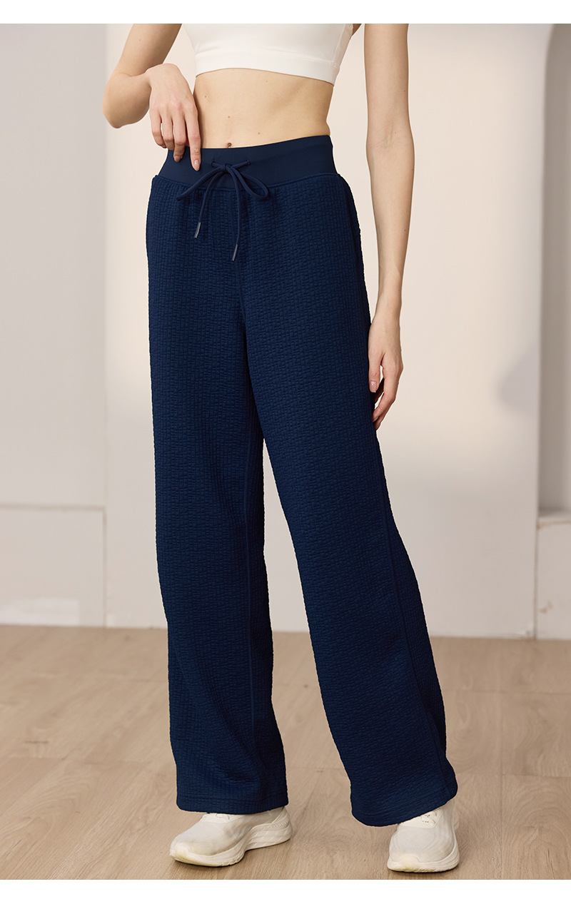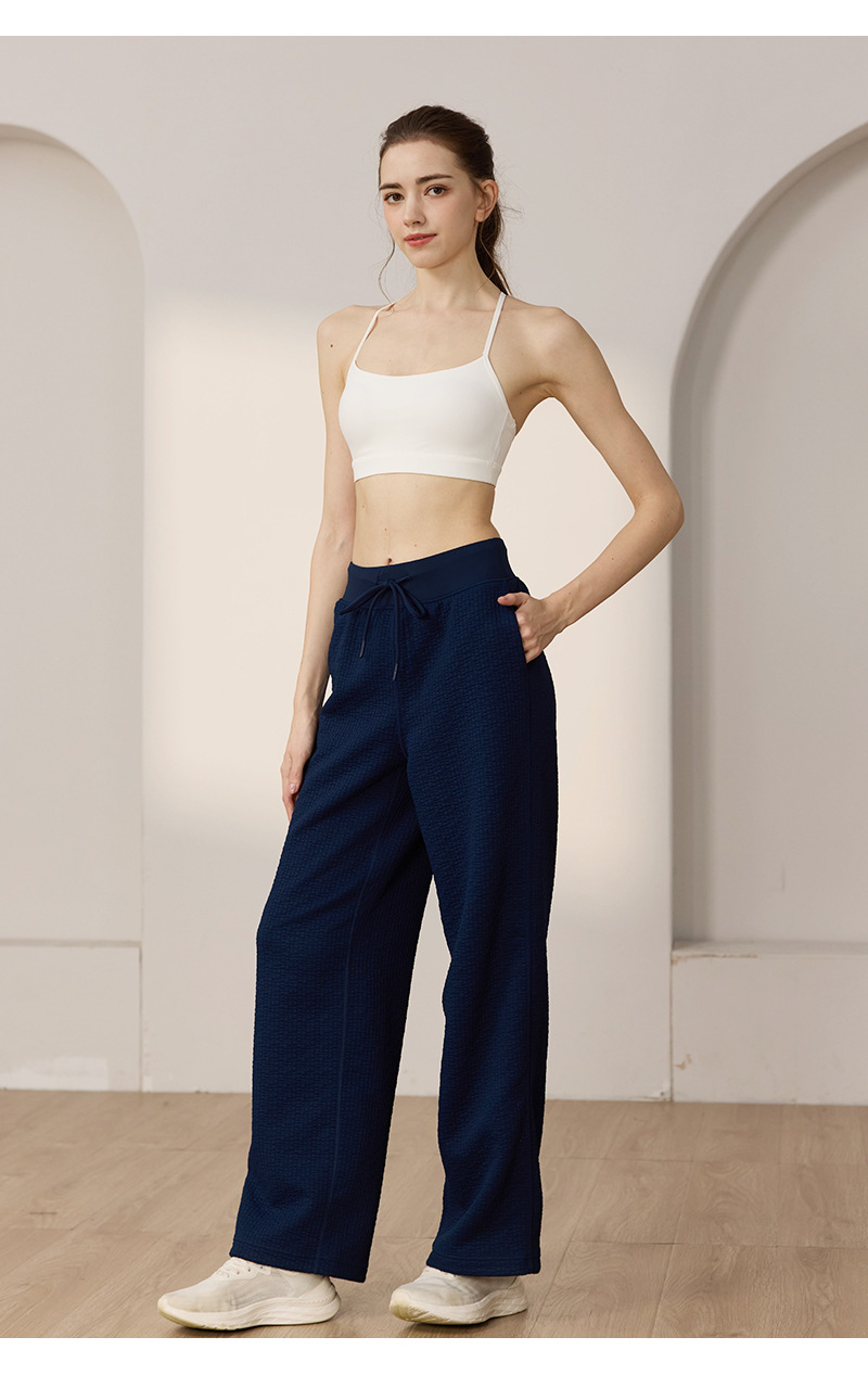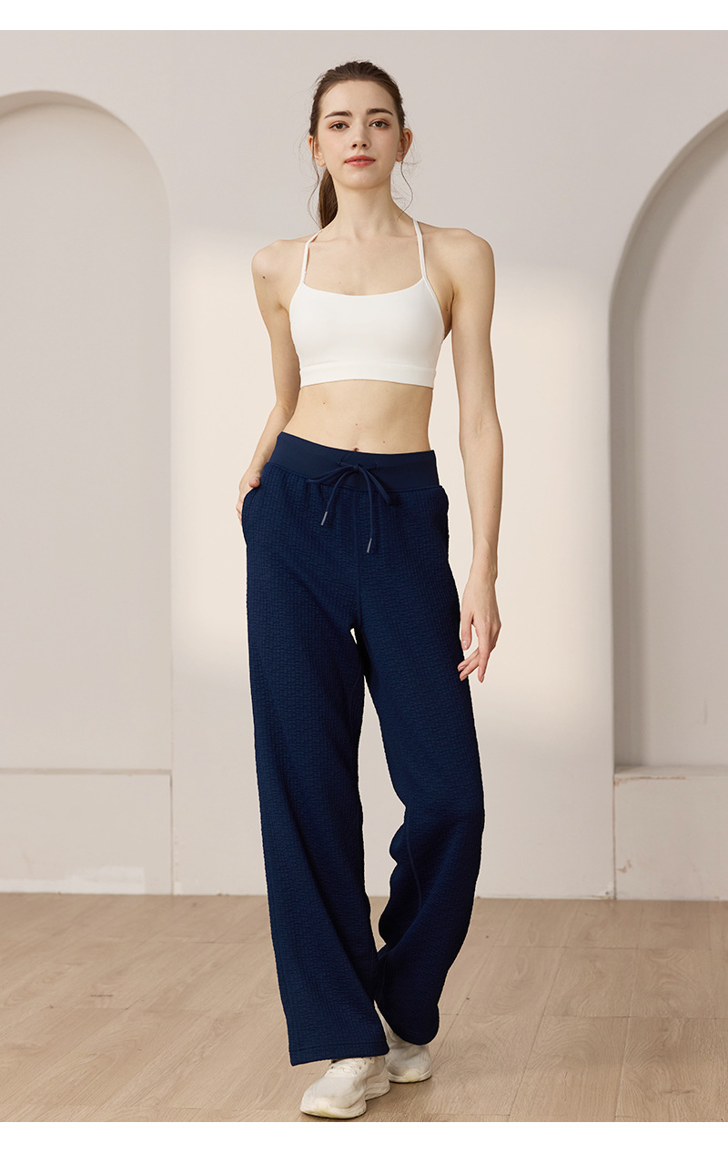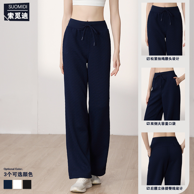 질감이있는 와플 질감 바지 여성의 높은 허리 탄성 현악기 넓은 다리 바지 스포츠 요가 피트니스 바지스토어 가기