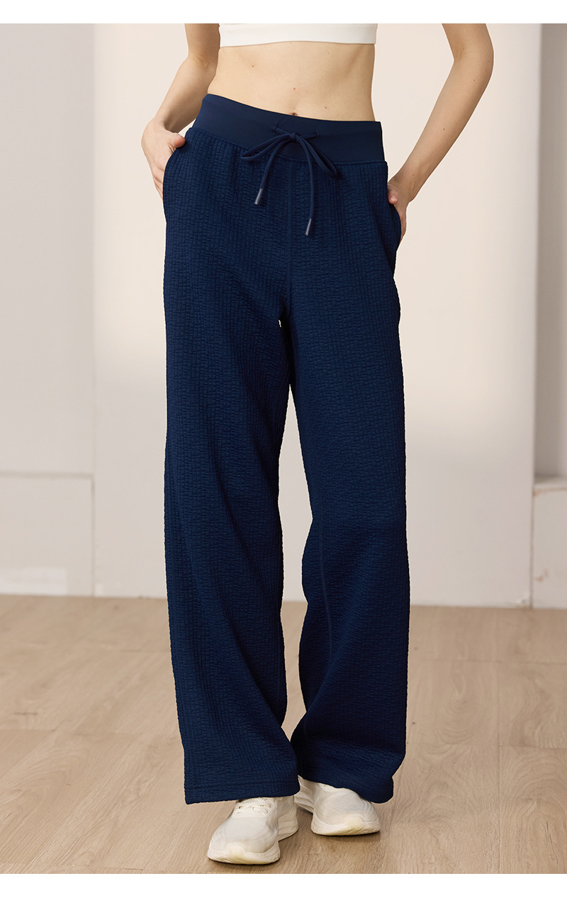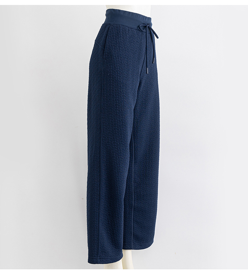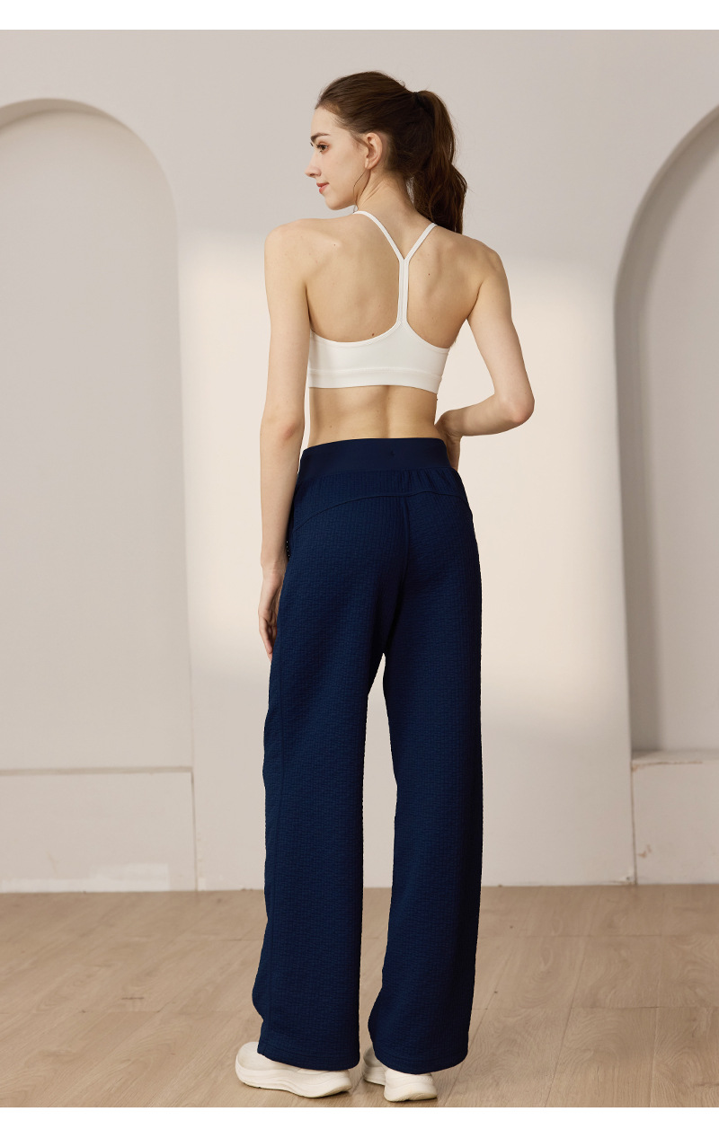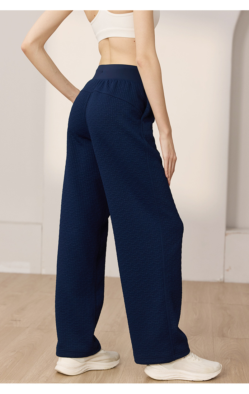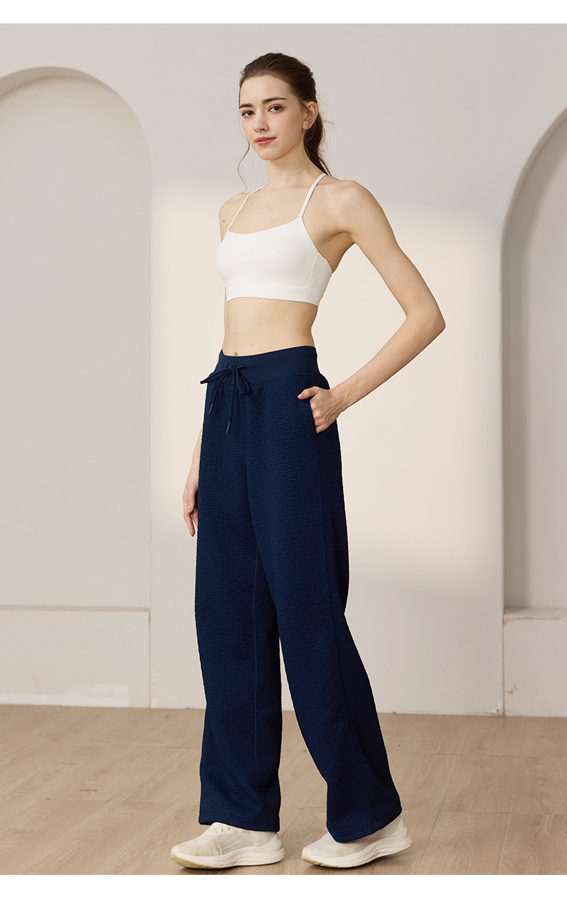 질감이있는 와플 질감 바지 여성의 높은 허리 탄성 현악기 넓은 다리 바지 스포츠 요가 피트니스 바지스토어 가기