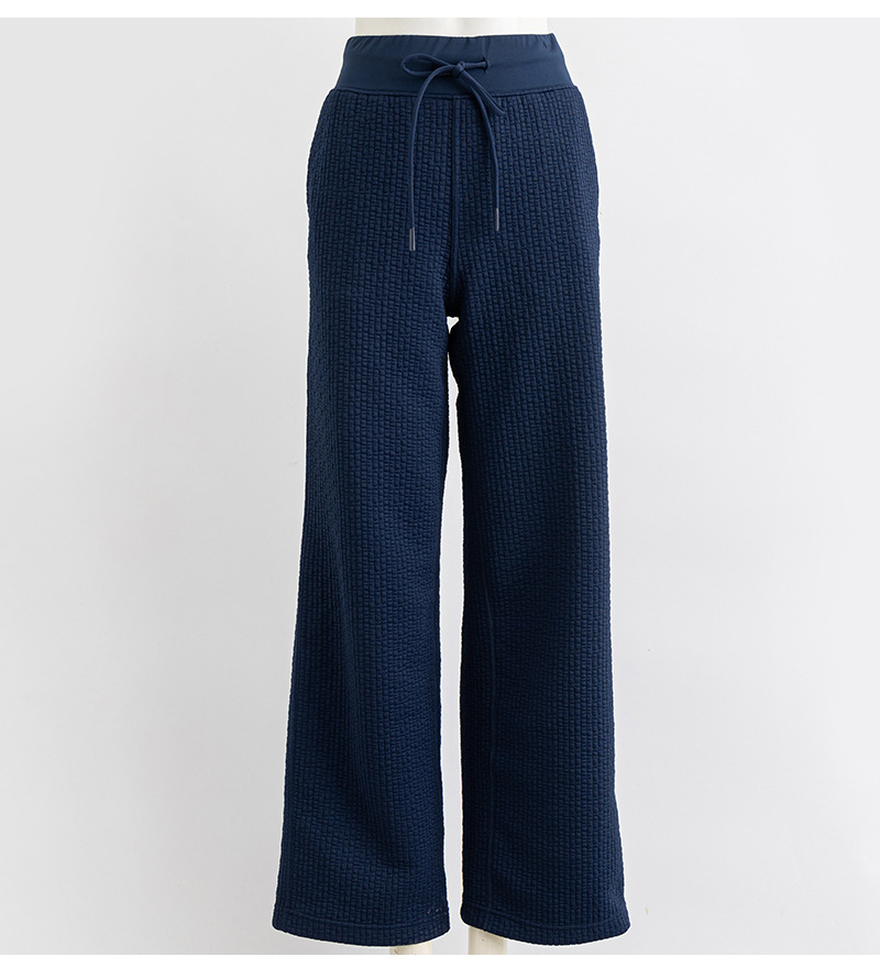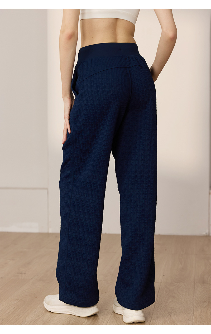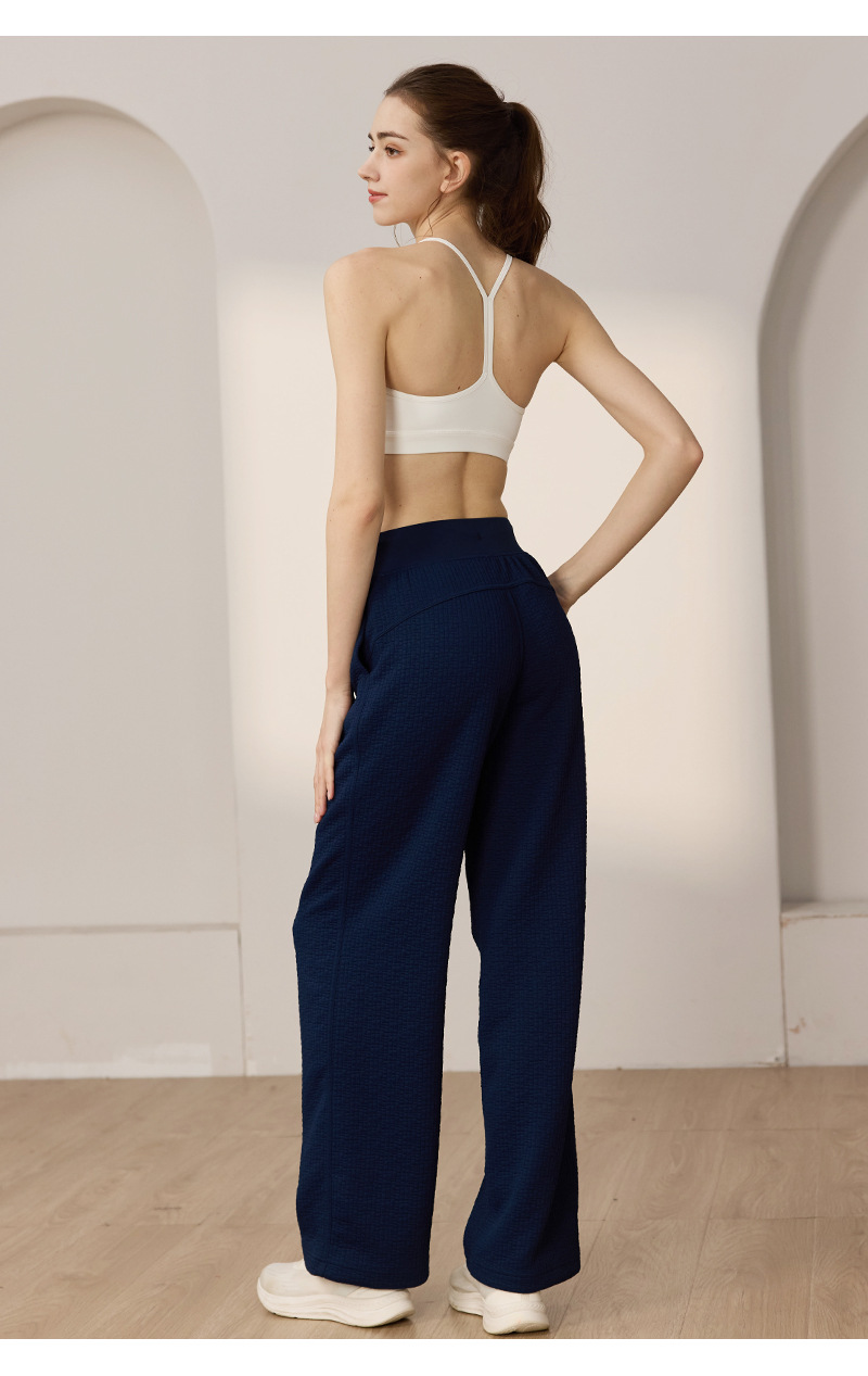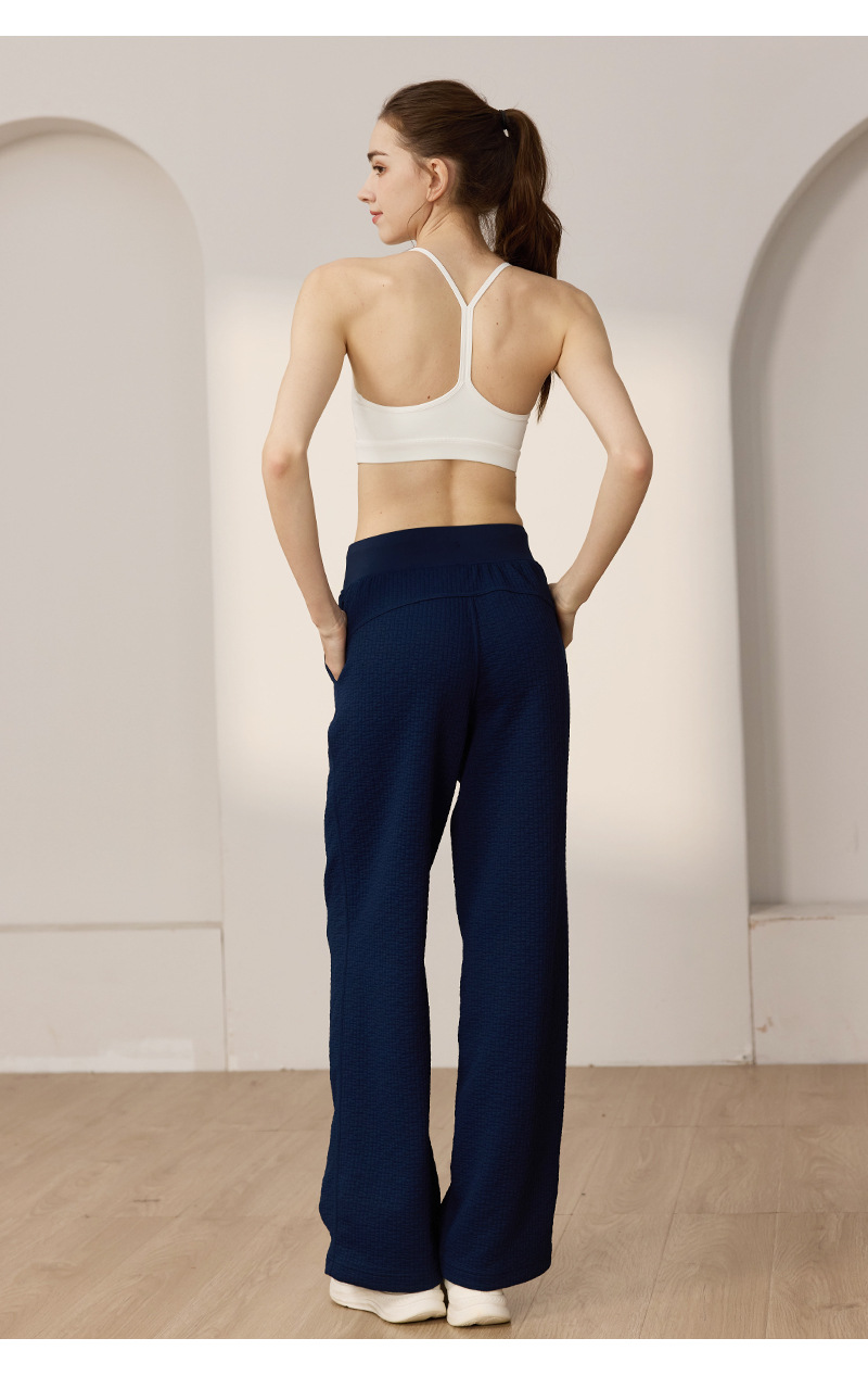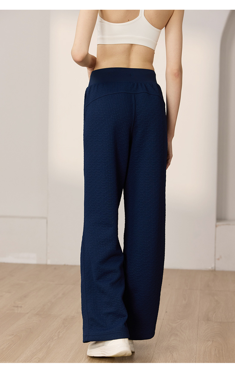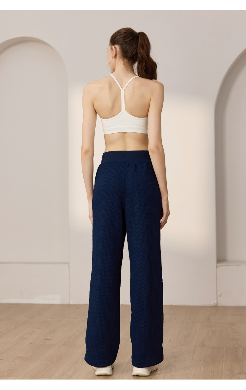 질감이있는 와플 질감 바지 여성의 높은 허리 탄성 현악기 넓은 다리 바지 스포츠 요가 피트니스 바지스토어 가기