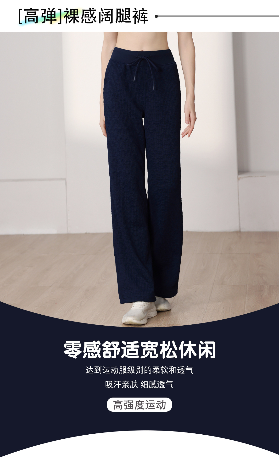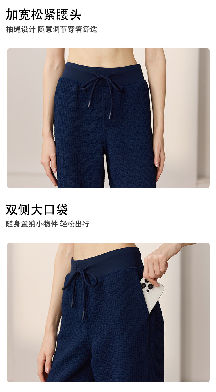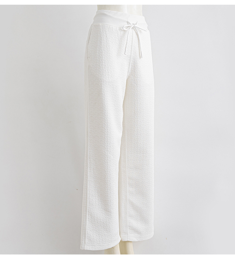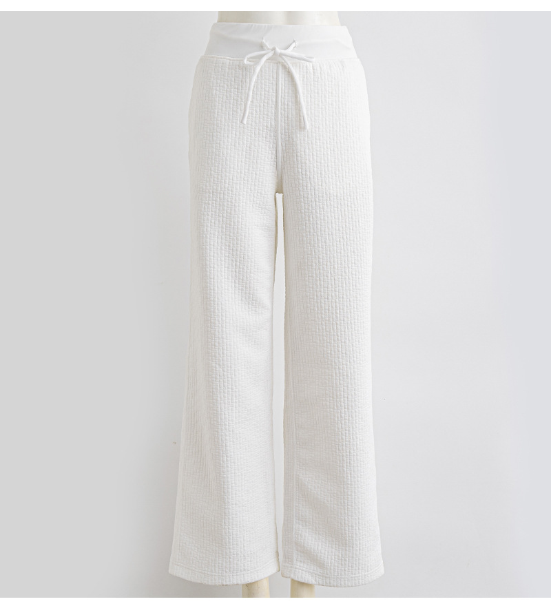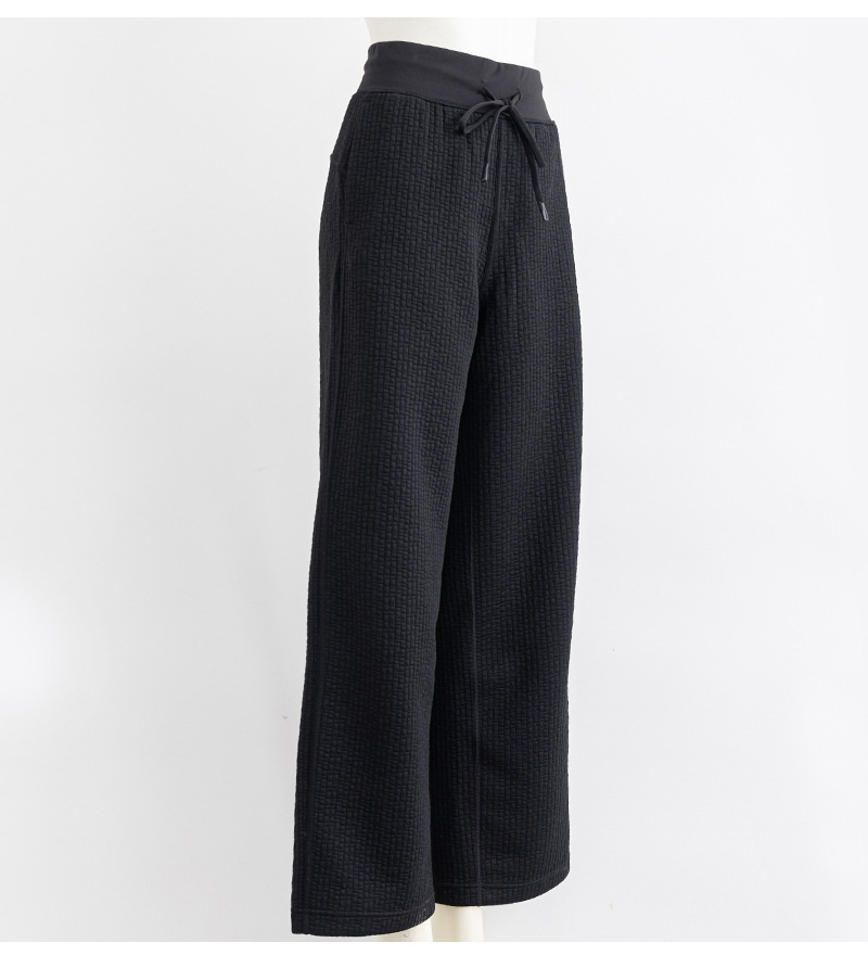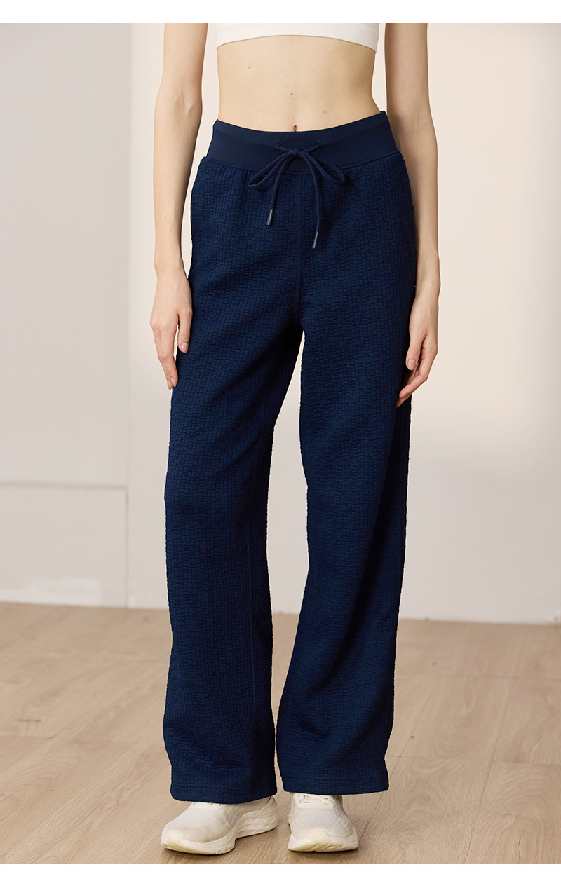 질감이있는 와플 질감 바지 여성의 높은 허리 탄성 현악기 넓은 다리 바지 스포츠 요가 피트니스 바지스토어 가기