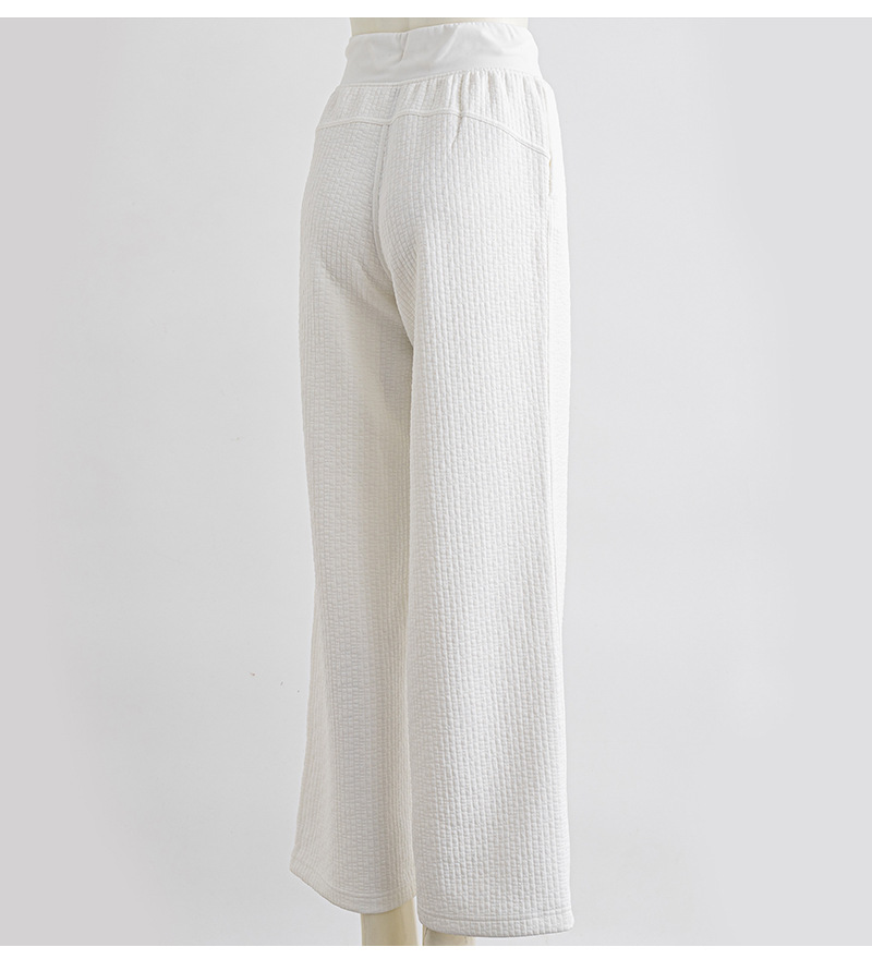 질감이있는 와플 질감 바지 여성의 높은 허리 탄성 현악기 넓은 다리 바지 스포츠 요가 피트니스 바지