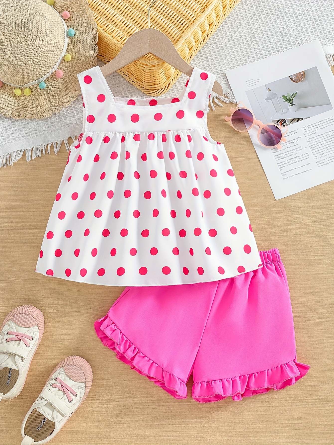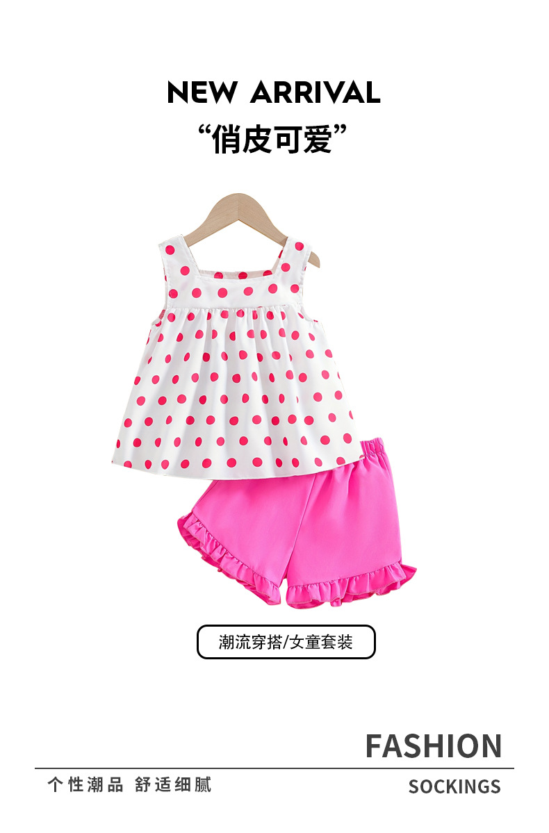 국경 간 소녀 여름 조끼 세트 루플 반바지와 함께 핑크 점 어린이 슬링 탑 투피스