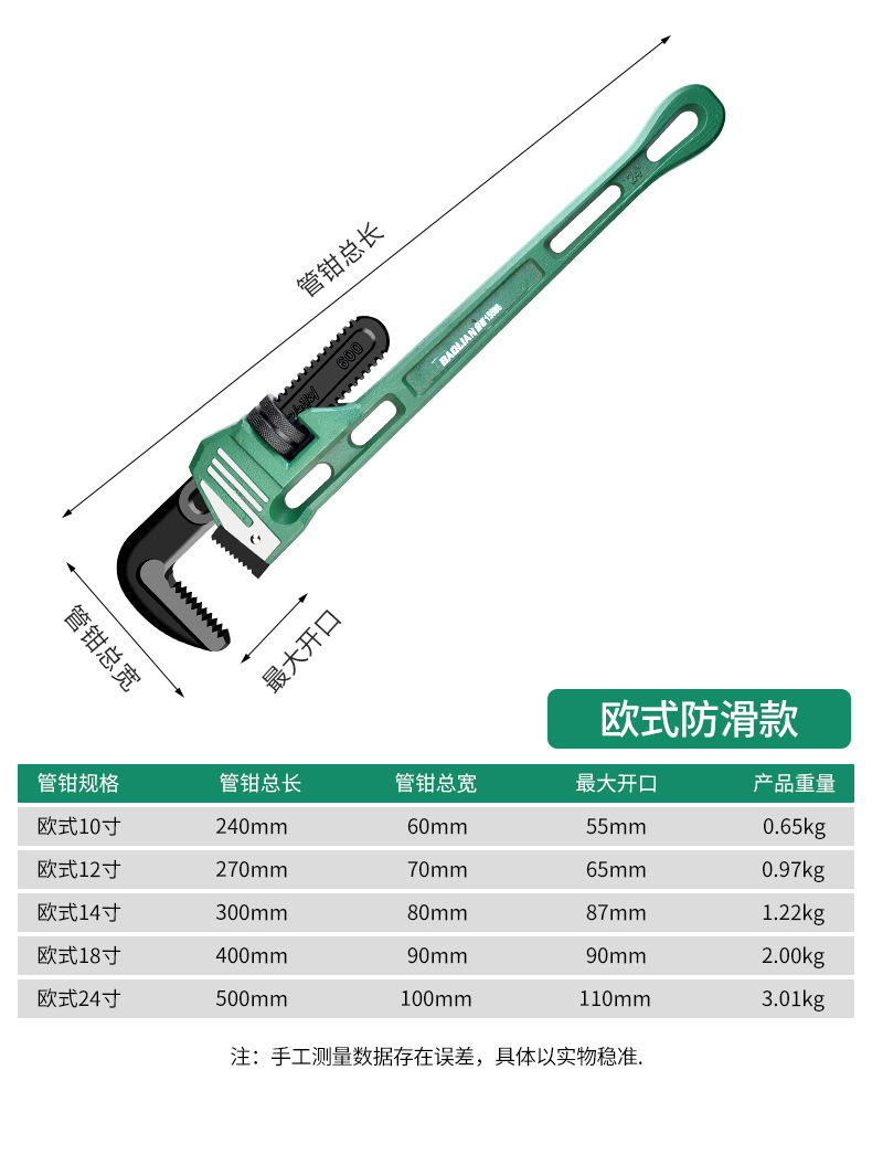 M & M & 파이프 집게 파이프 집게 렌치 대형 유니버설 워터 파이프 집게 렌치 다기능 가정용 파이프 목구멍
