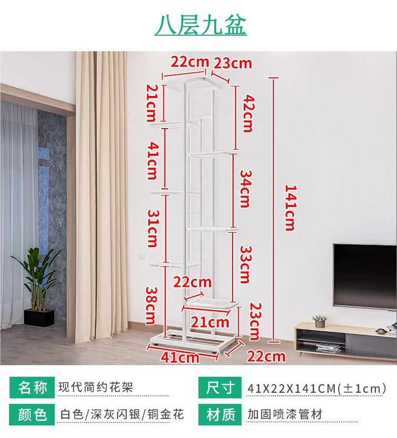 • 구리 황금 꽃 [8 레이어 및 9 냄비] [높이: 141CM] [메시 칸막이, 강력한 내하중]