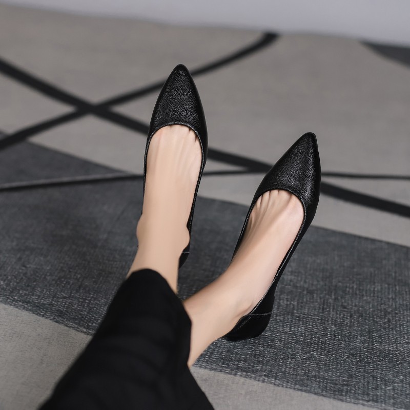 부드러운 가죽 작업 신발 여성 블랙 플랫 부드러운 바닥 가죽 신발 전문 업무 인터뷰 호텔 미끄럼 방지 플러스 사이즈 편안한 싱글 신발스토어 가기