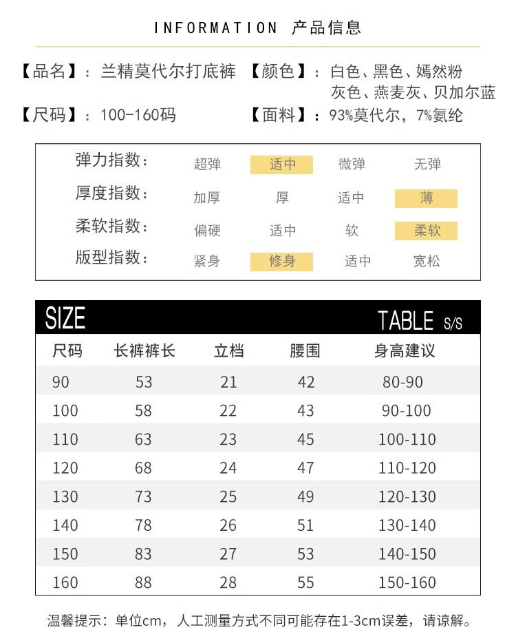 클래스 A 어린이 모달 레깅스 여름 얇은 흰색 소녀의 봄과 가을 바지 소녀 가을 아기의 가을 바지스토어 가기