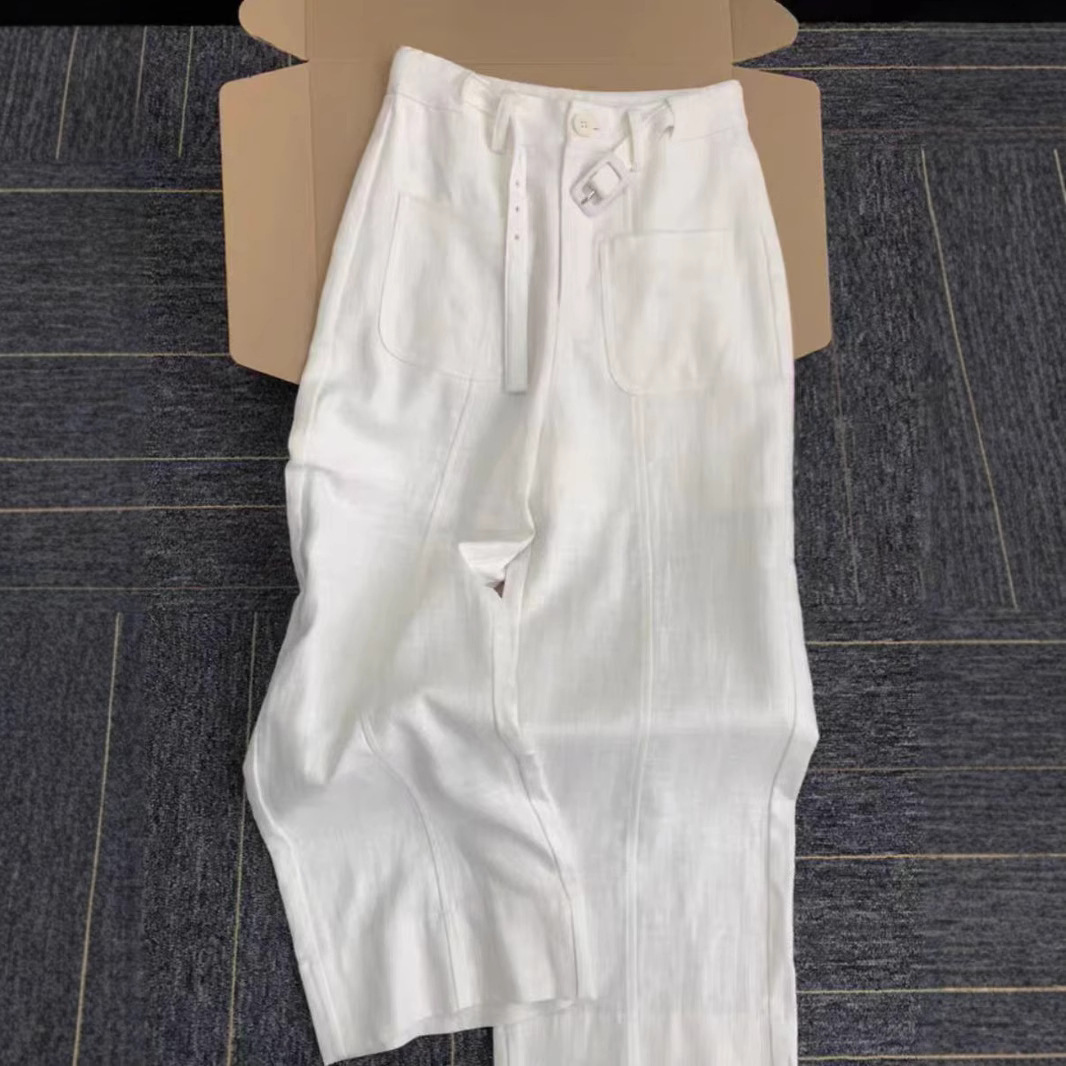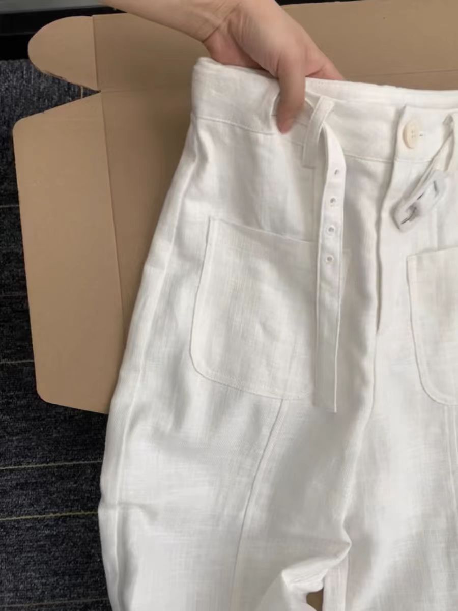 CHAO级推荐!松弛感老钱风~极简大气白色亚麻高级感休闲阔腿西裤