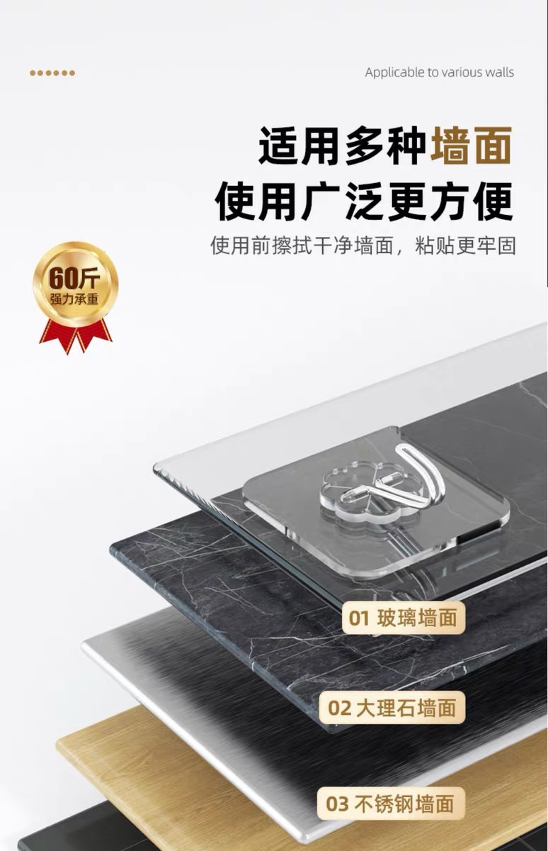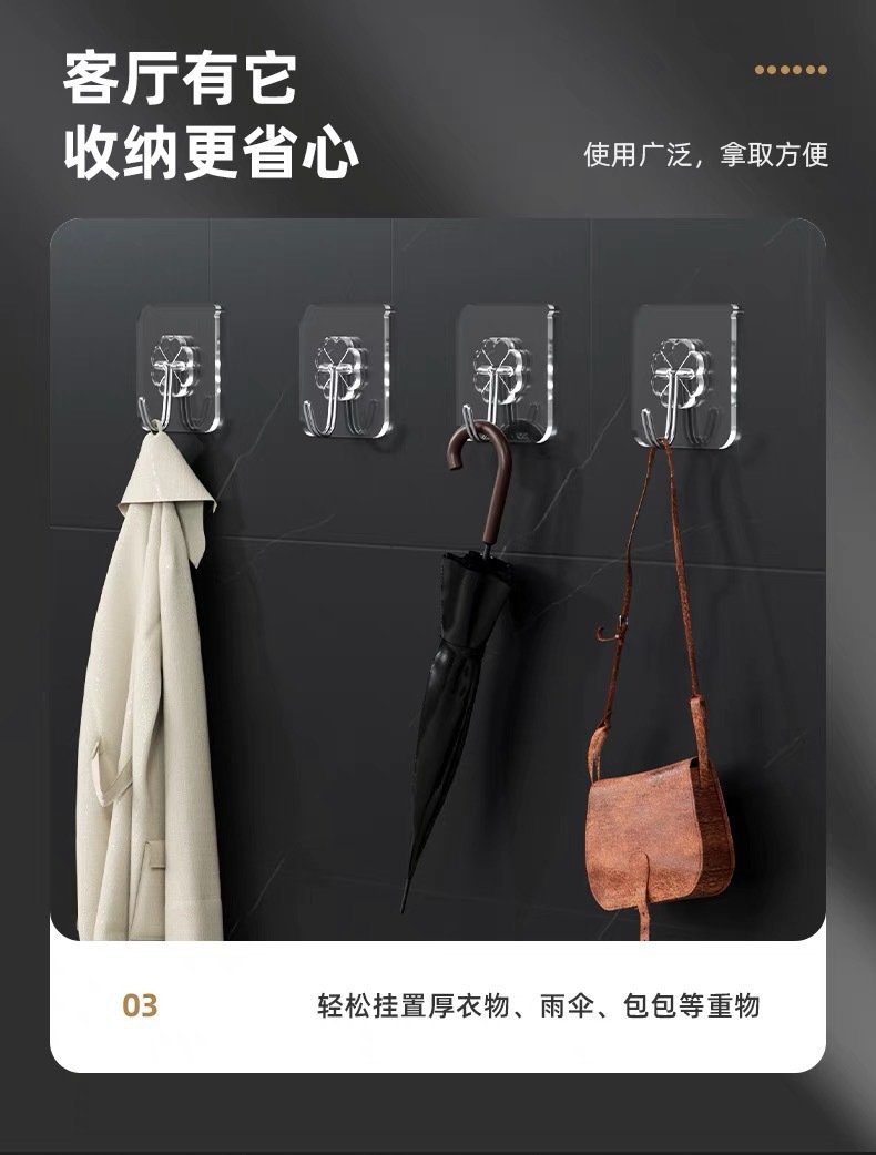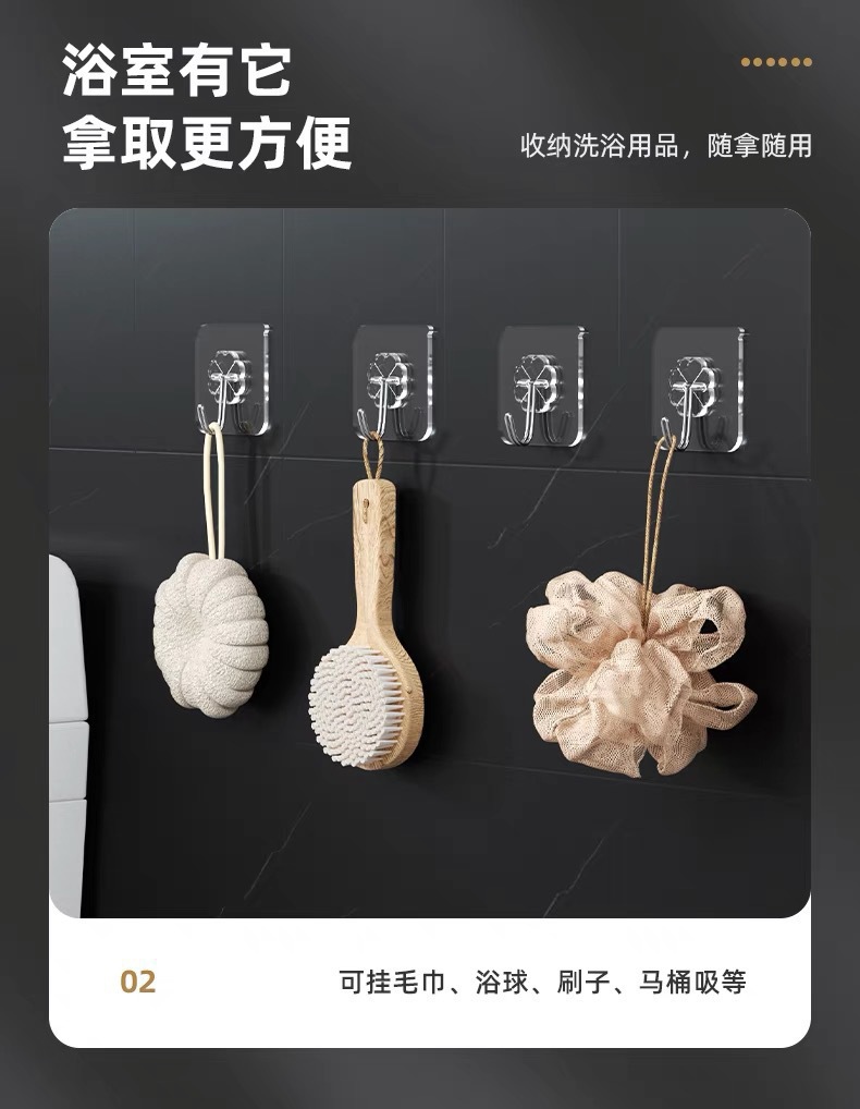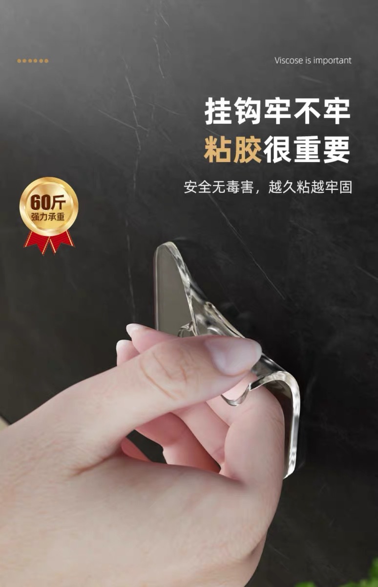 ✅투명한 후크 비 천공 끈적 끈적한 후크 도매 원활한 후크 플라스틱 창조적 인 욕실 주방 교수형