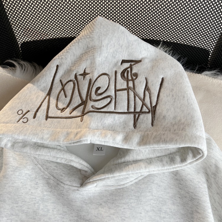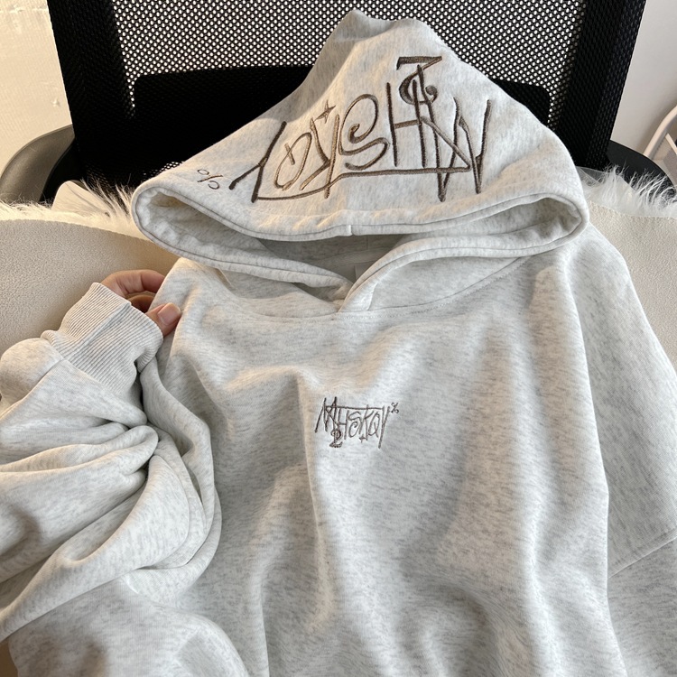 중공업 편지 수 놓은 후드 스웨트 남자 무거운 기모 미국 스타일 가을 및 겨울 스포츠 캐주얼 루즈 탑 소년 소녀스토어 가기
