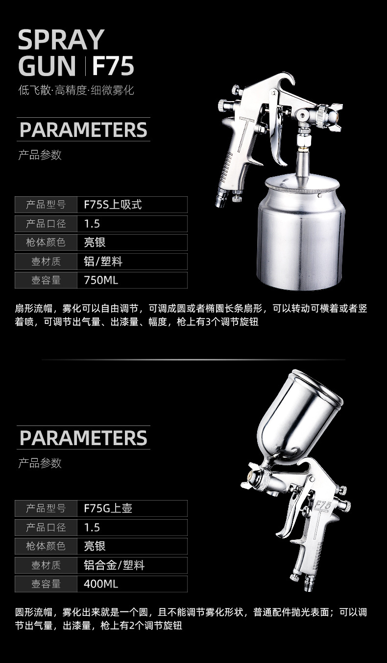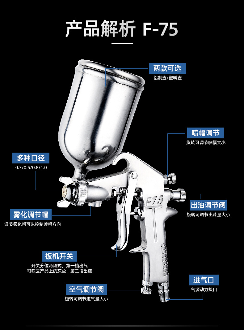 ✅F-75 페인트 스프레이 건 f75 공압 화분 수 가구 자동차 페인트 접착제 높은 안개스토어 가기