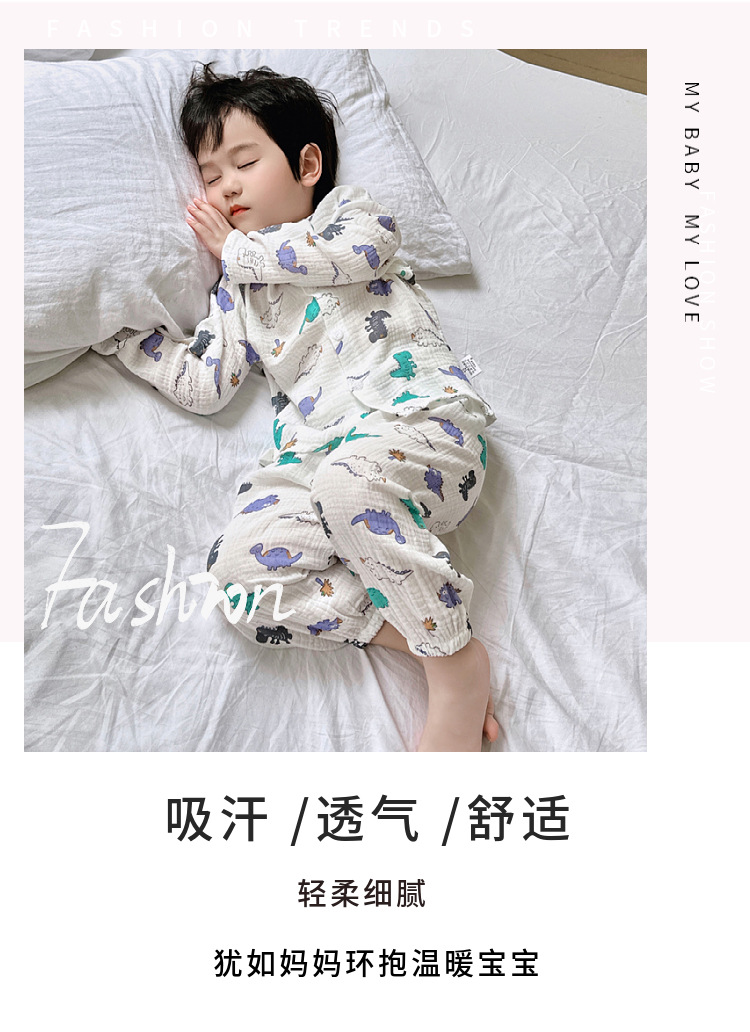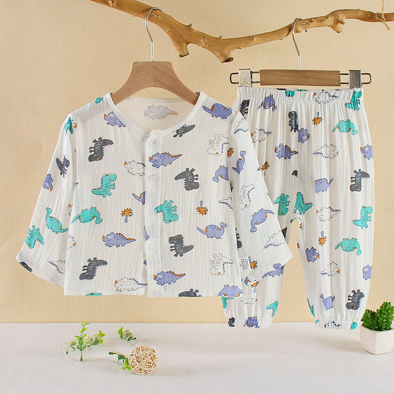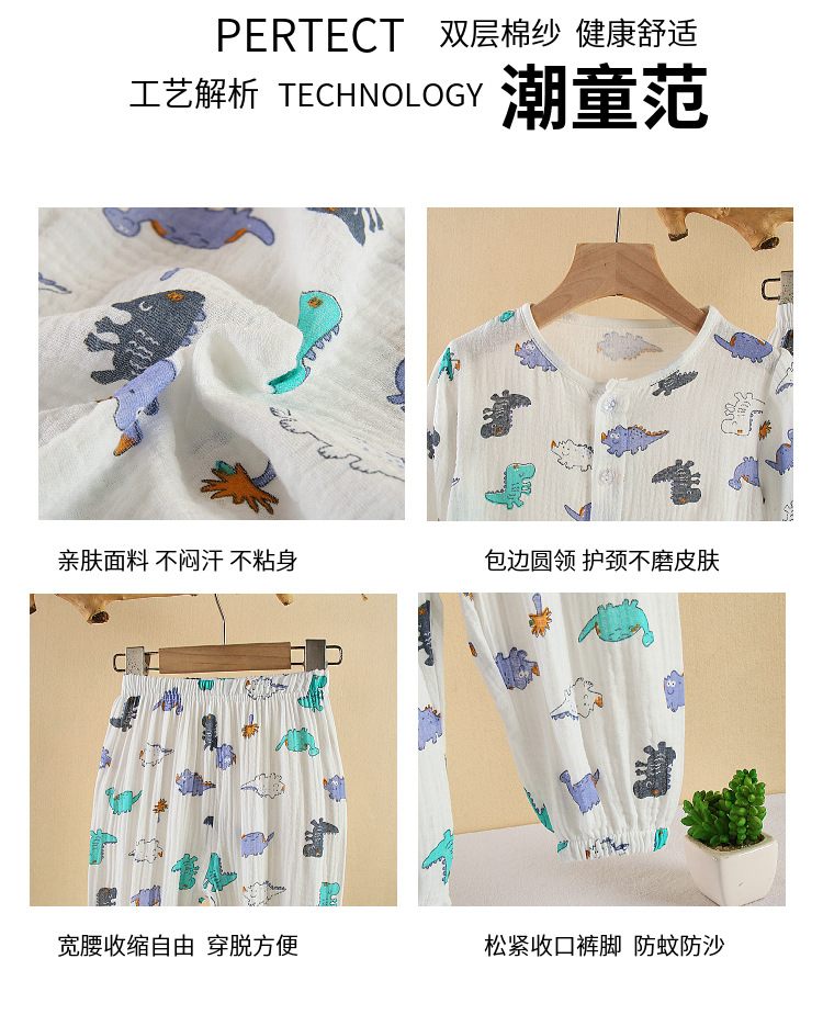 • 순면 잠옷 세트 더블 레이어 원사 공룡