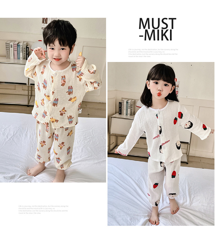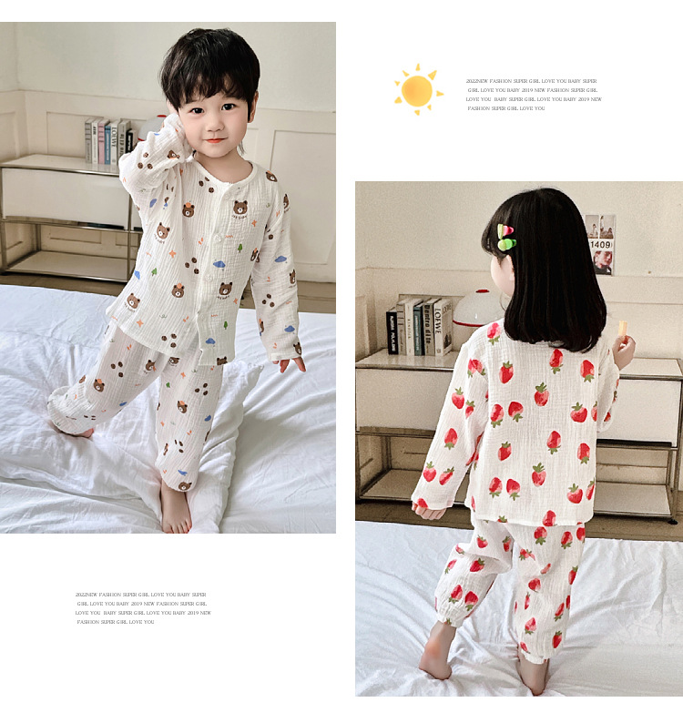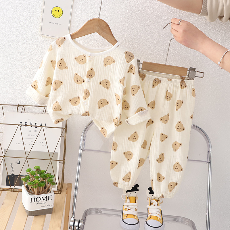 • 순면 잠옷 세트 더블 레이어 거즈 문자 곰