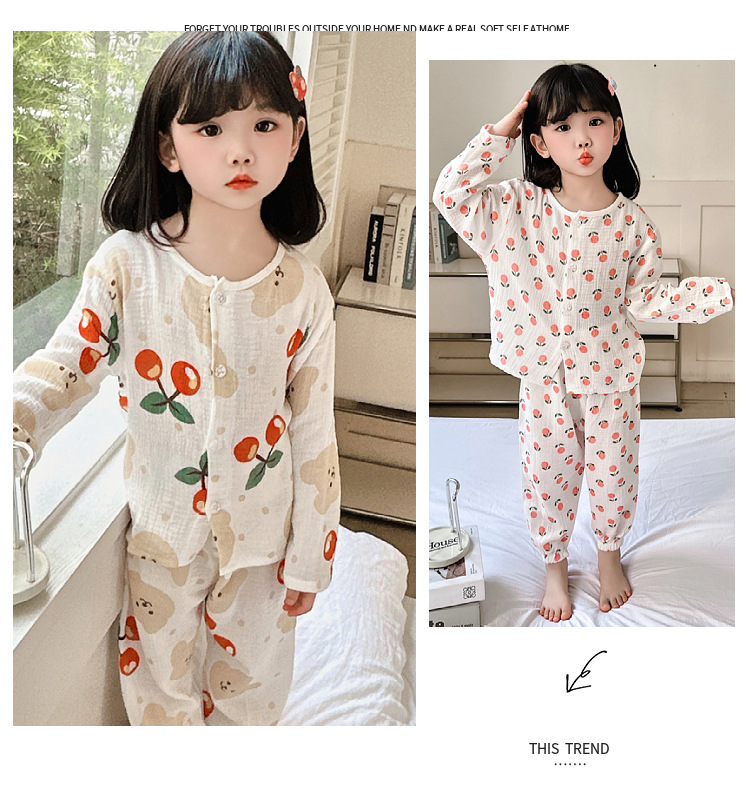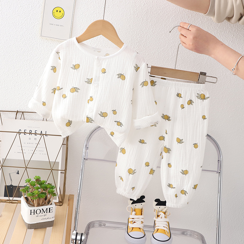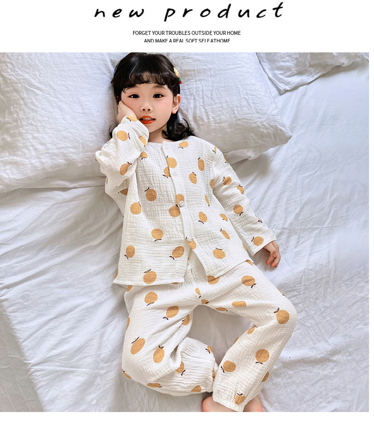 • 순면 잠옷 세트 더블 레이어 거즈 노란색 과일