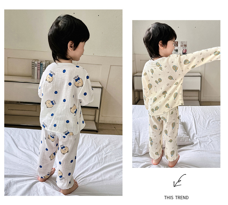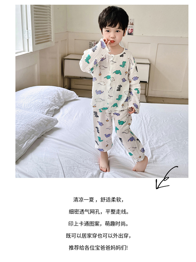 남학생 에어컨 의류 잠옷 세트 여름 아기 집 옷 얇은 어린이 봄과 가을 집 옷 면 긴 소매스토어 가기