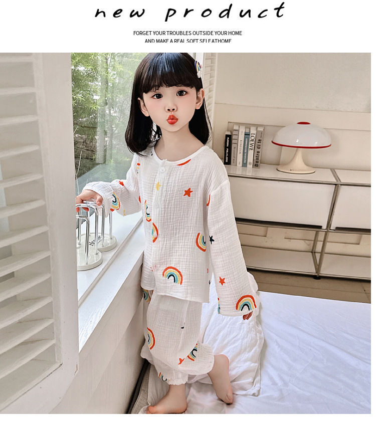 • 순면 잠옷 세트 더블 레이어 원사 레인보우