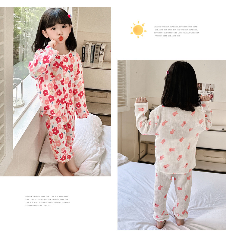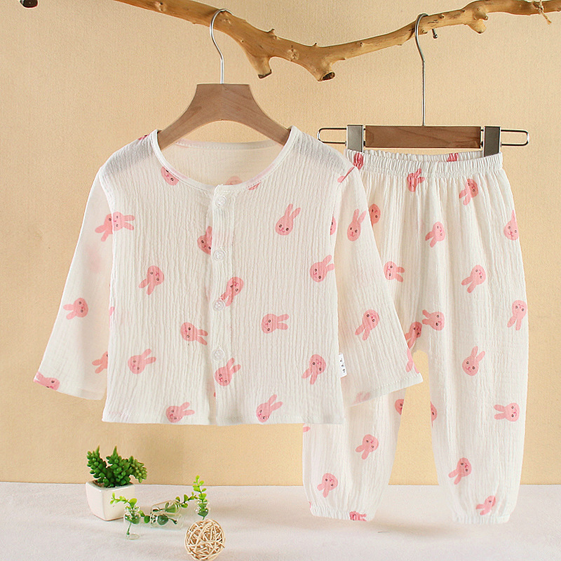 • 순면 잠옷 세트 더블 레이어 거즈 핑크 토끼